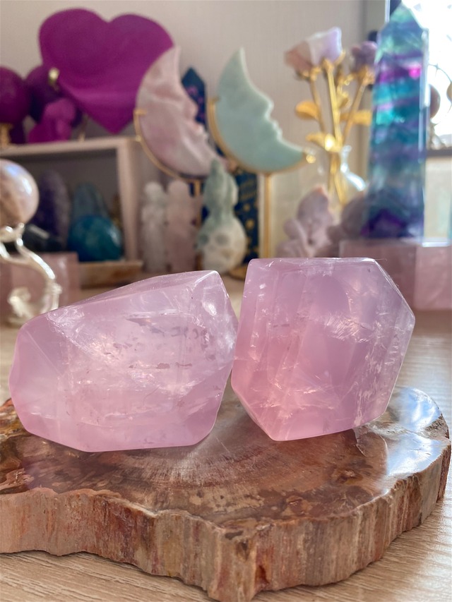 ローズクォーツフリーフォームです。 ※サイズや重さは写真でご確認ください とってもとっても高品質な艶々ぷるぷるスケスケの可愛すぎるローズちゃんです♡ 産地 マダガスカル 左A 右Bでお選び下さいませ♪ #天然石 #ローズクォーツ #rose #crystal