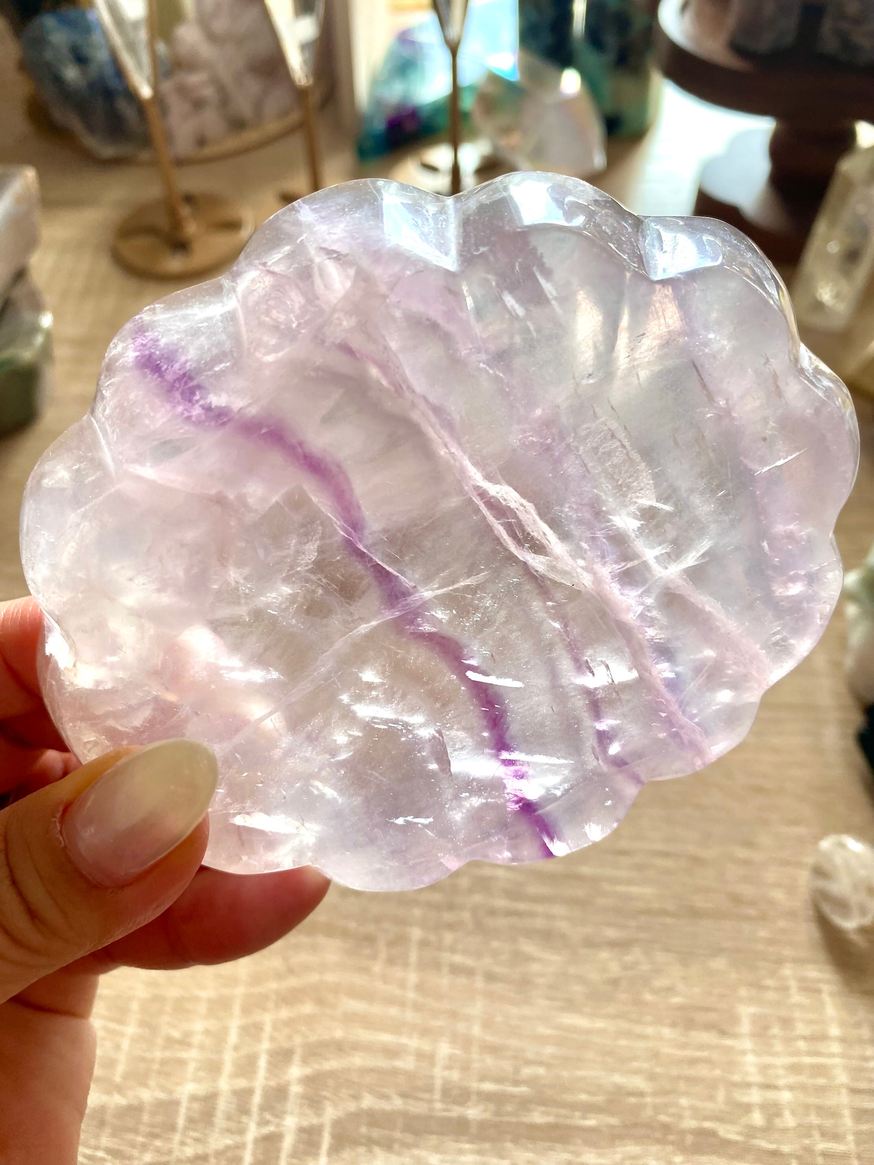 美しいイットリウムフローライトのトレーが、あなたの空間に上品さと個性をプラスします!このトレーは、鮮やかな色彩と魅力的な模様が特徴で、見る人を惹きつける存在感を持っています。使い方次第で、様々なシーンで活躍するアイテムです♡