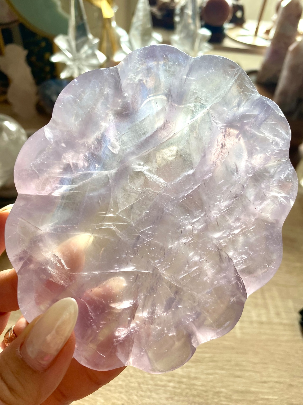 このイットリウムフローライトのトレーをぜひお楽しみください。お部屋の雰囲気を華やかに演出し、心豊かな空間を創出する素敵なアイテムです!