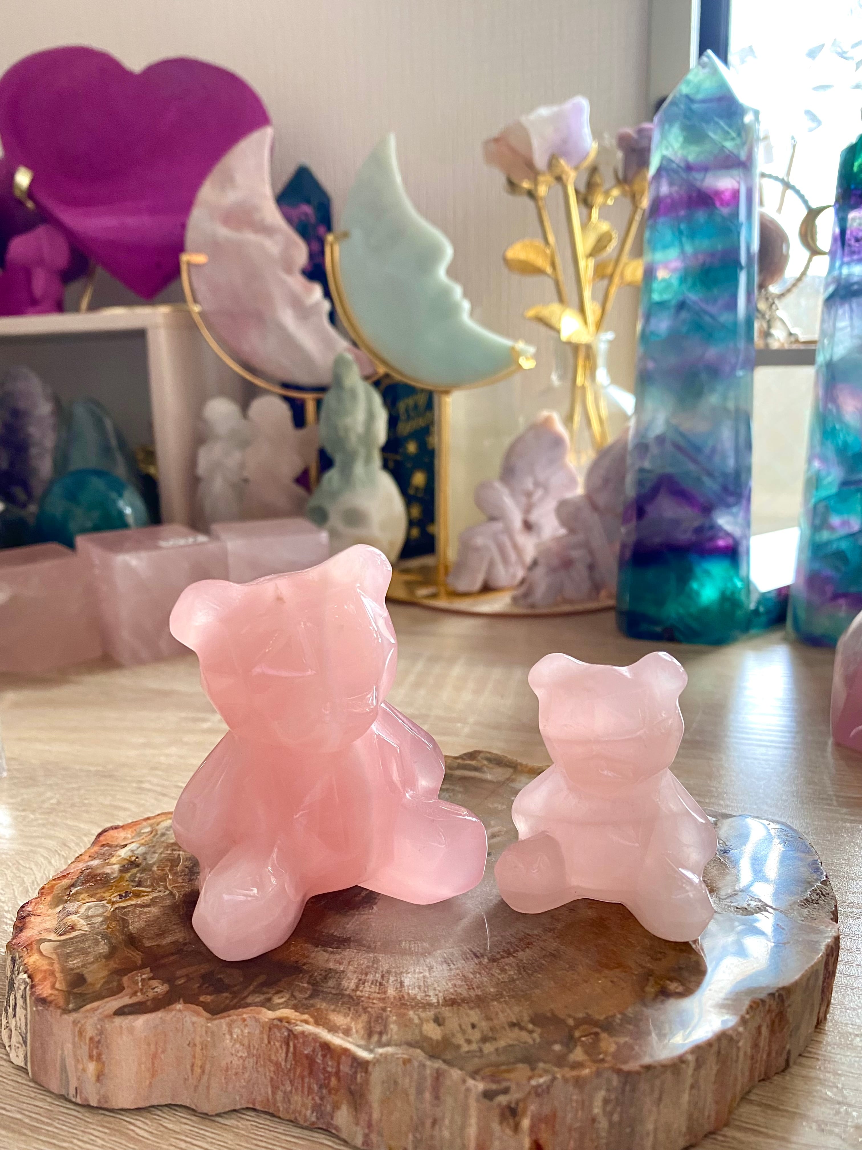くまローズクォーツの登場です!キュートなクマシェイプでデザインされたこのローズクォーツは、愛らしさと華やかさを兼ね備えています!