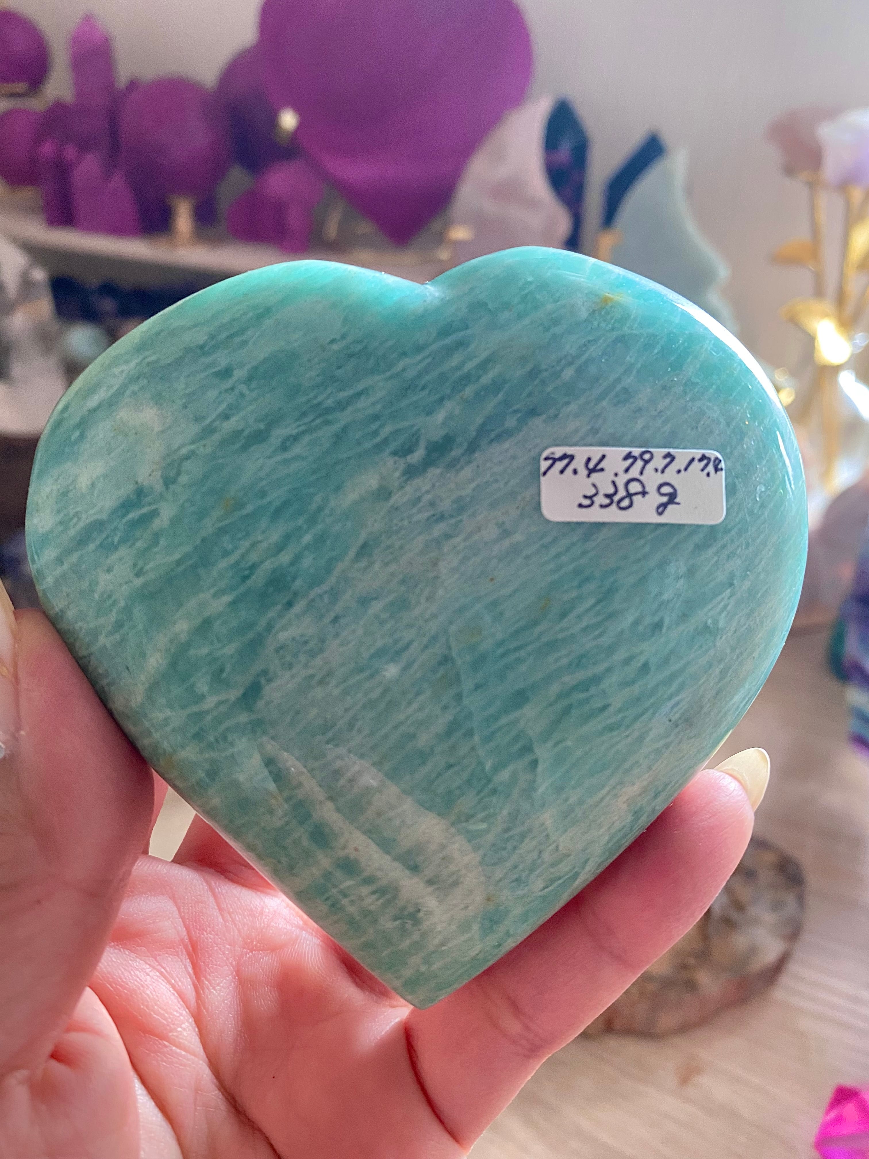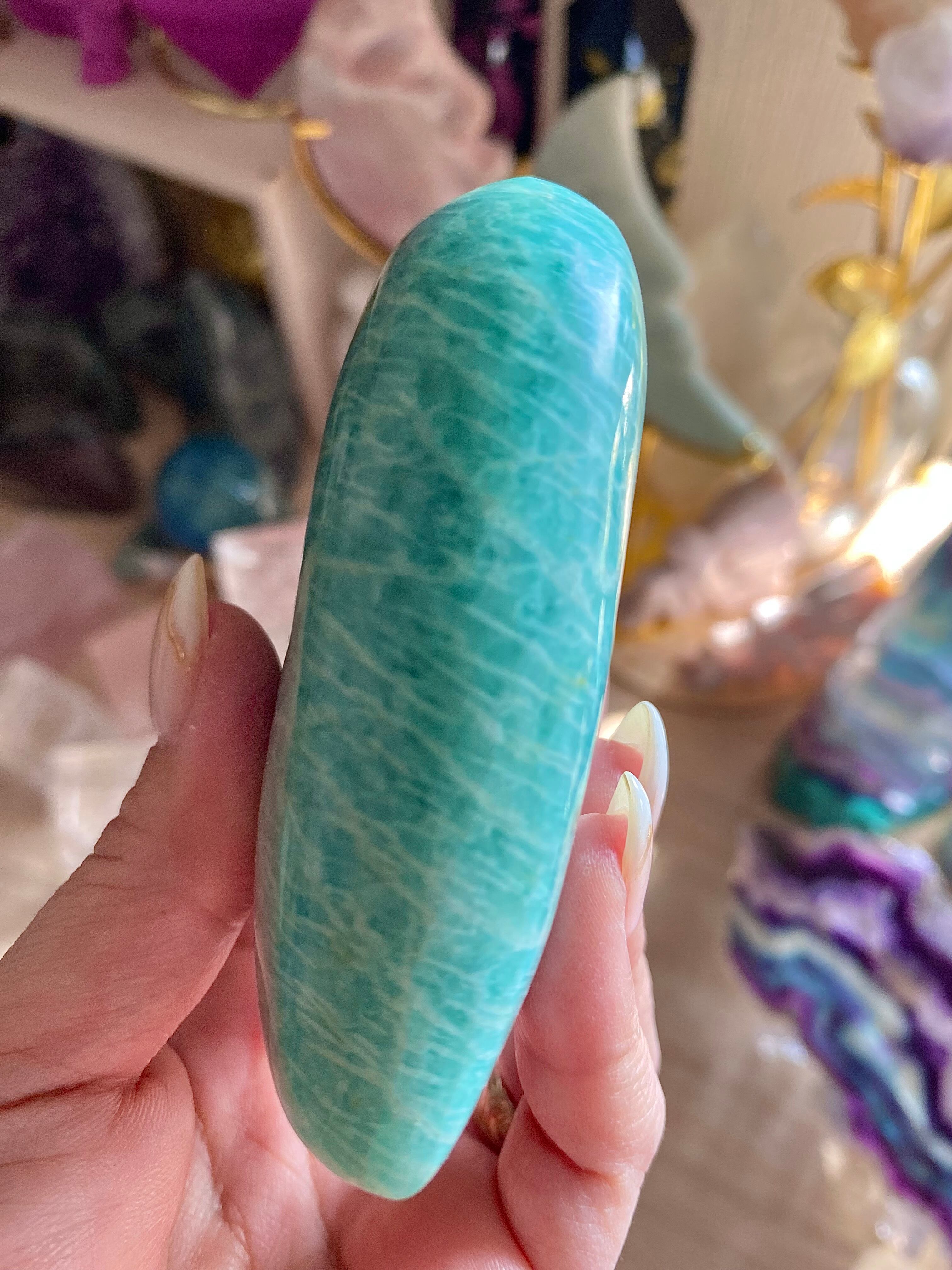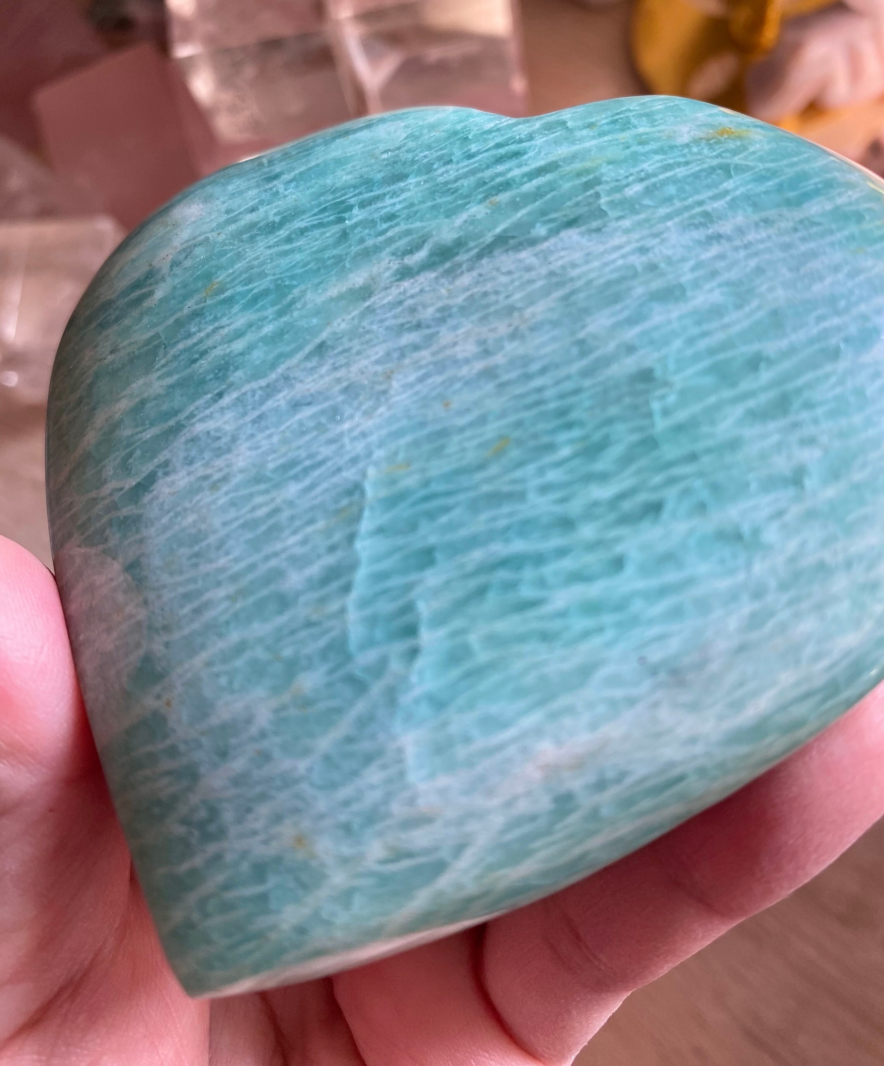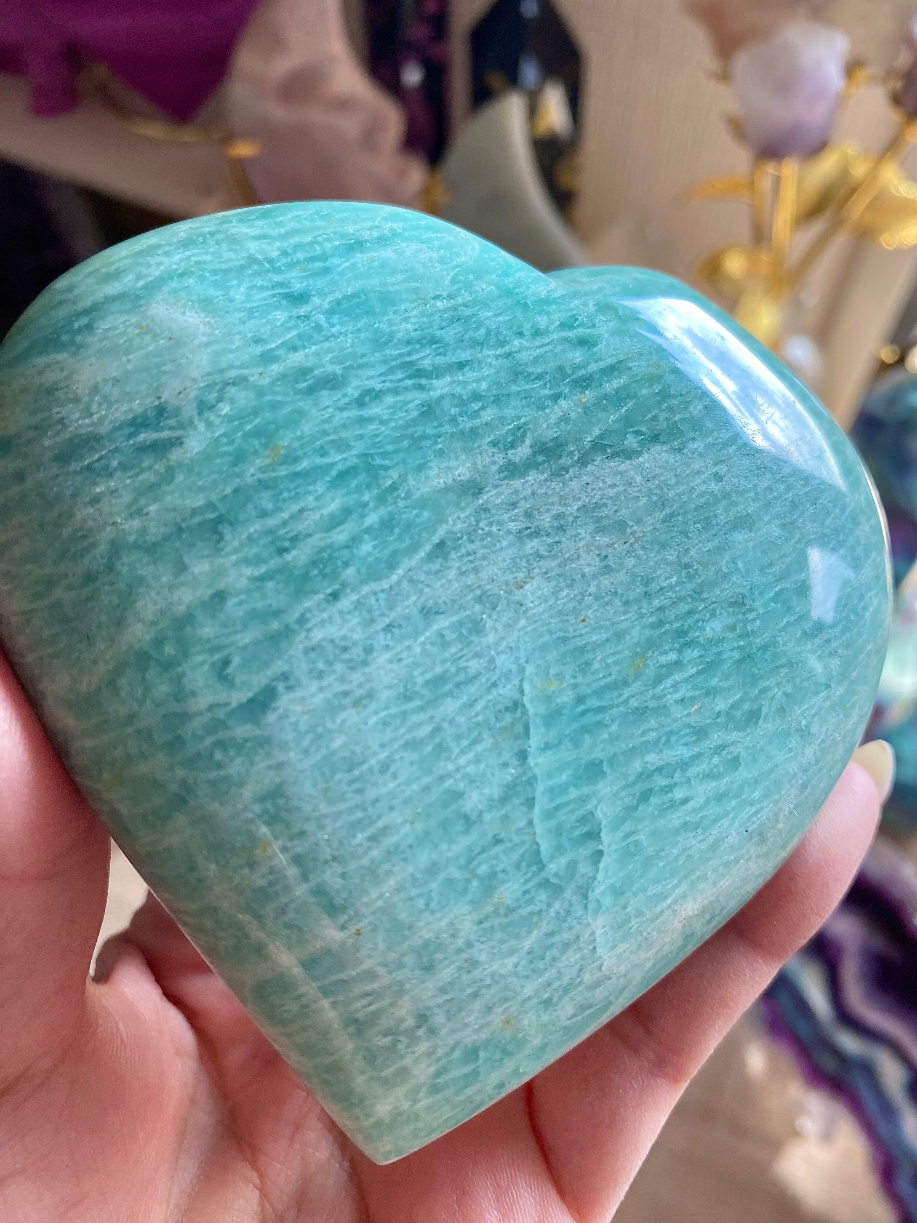 穏やかなブルーグリーンのアマゾナイトは、心の平穏をもたらす天然石として知られています。このハート型にカットされた一品は、インテリアの素敵なアクセントとしてだけでなく、心のこもったギフトとしても大変喜ばれることでしょう!その優雅なフォルムが、どの空間にも温かみを加えます♡