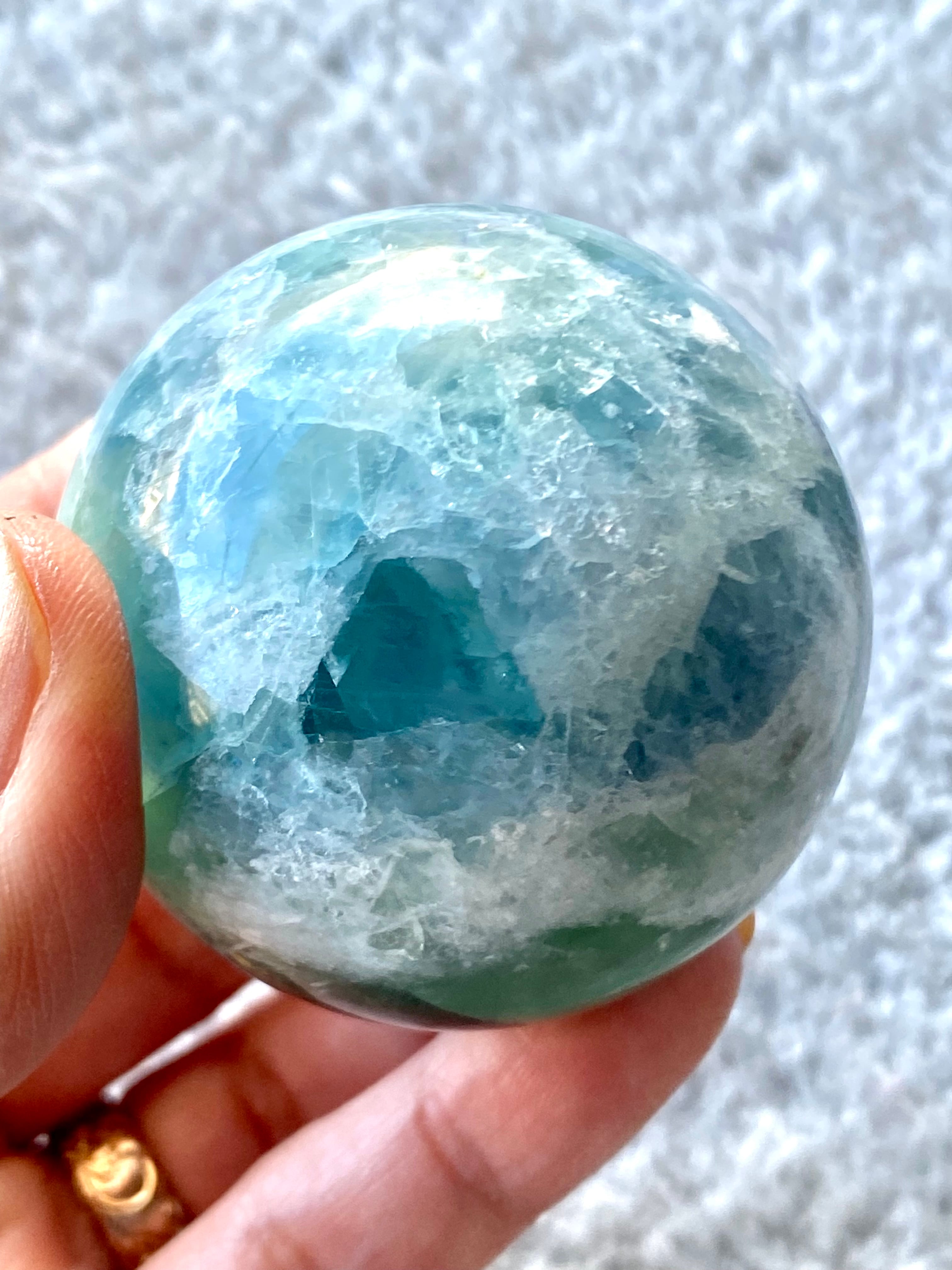 高品質なエンジェルフェザーフローライトスフィアはなかなかないのと高価な石になります。