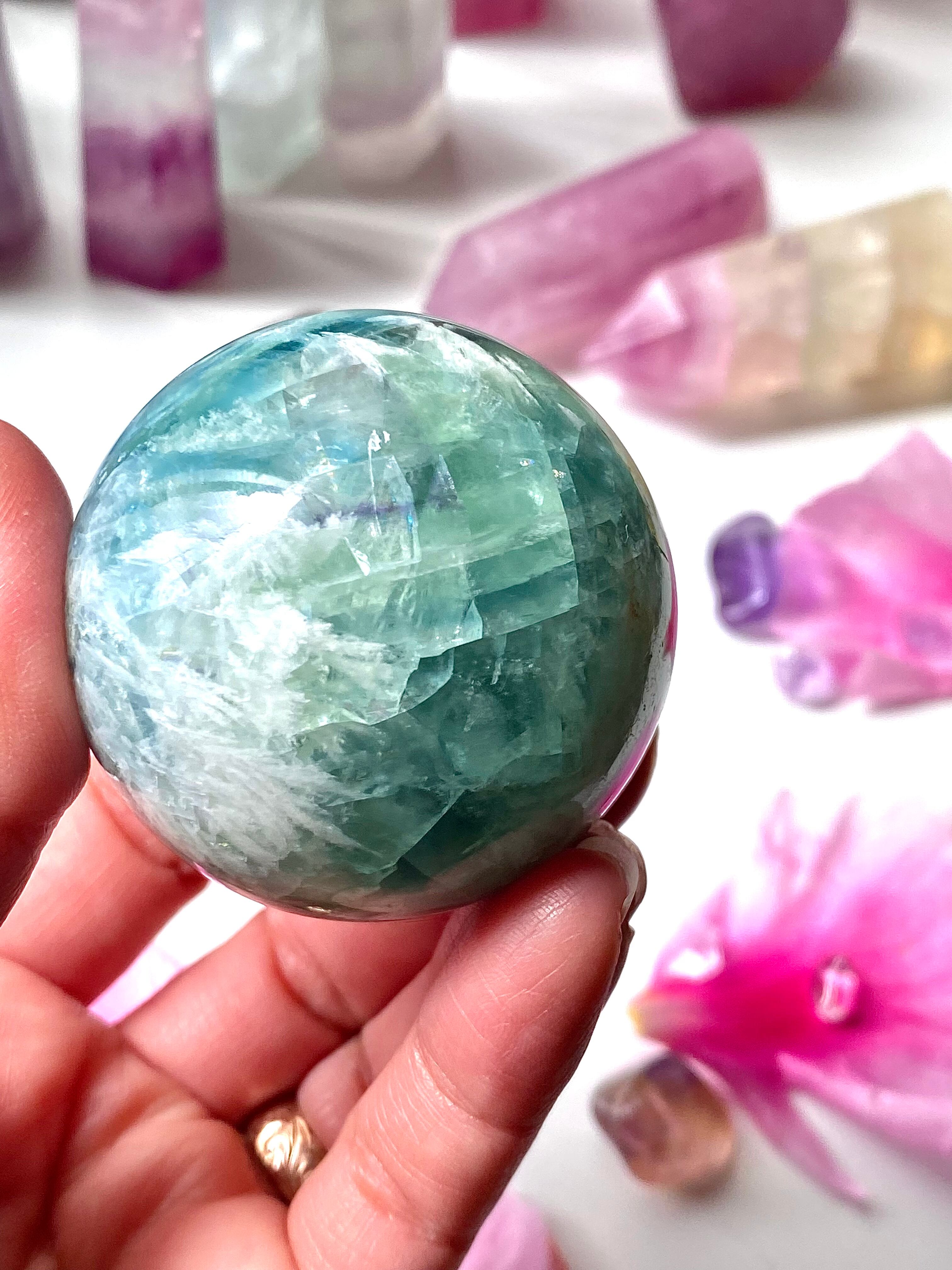 レインボーフラッシュ!グリーンフローライトのスフィアです!