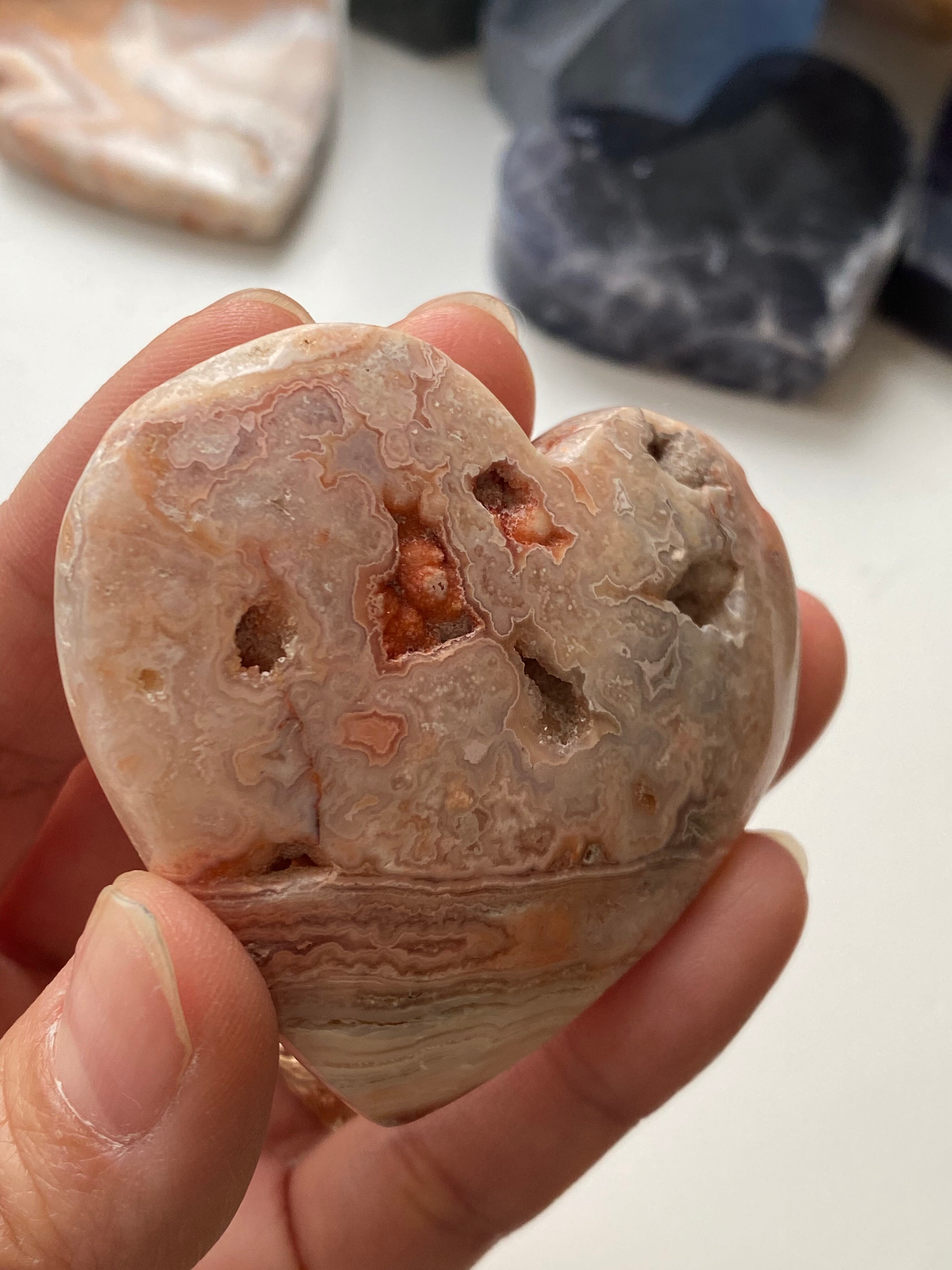 レースアゲートの中でも、しま模様が複雑に入り組んだものをクレイジーレースアゲートと呼びます。 ナチュラルな美しさを持った、アースカラーの石。 アゲートは様々な物質が集まった結晶です。 このような性質から、共有・集合の意味が込められていて、人との絆やコミュニケーションを深めるサポートをしてくれると言われています。
