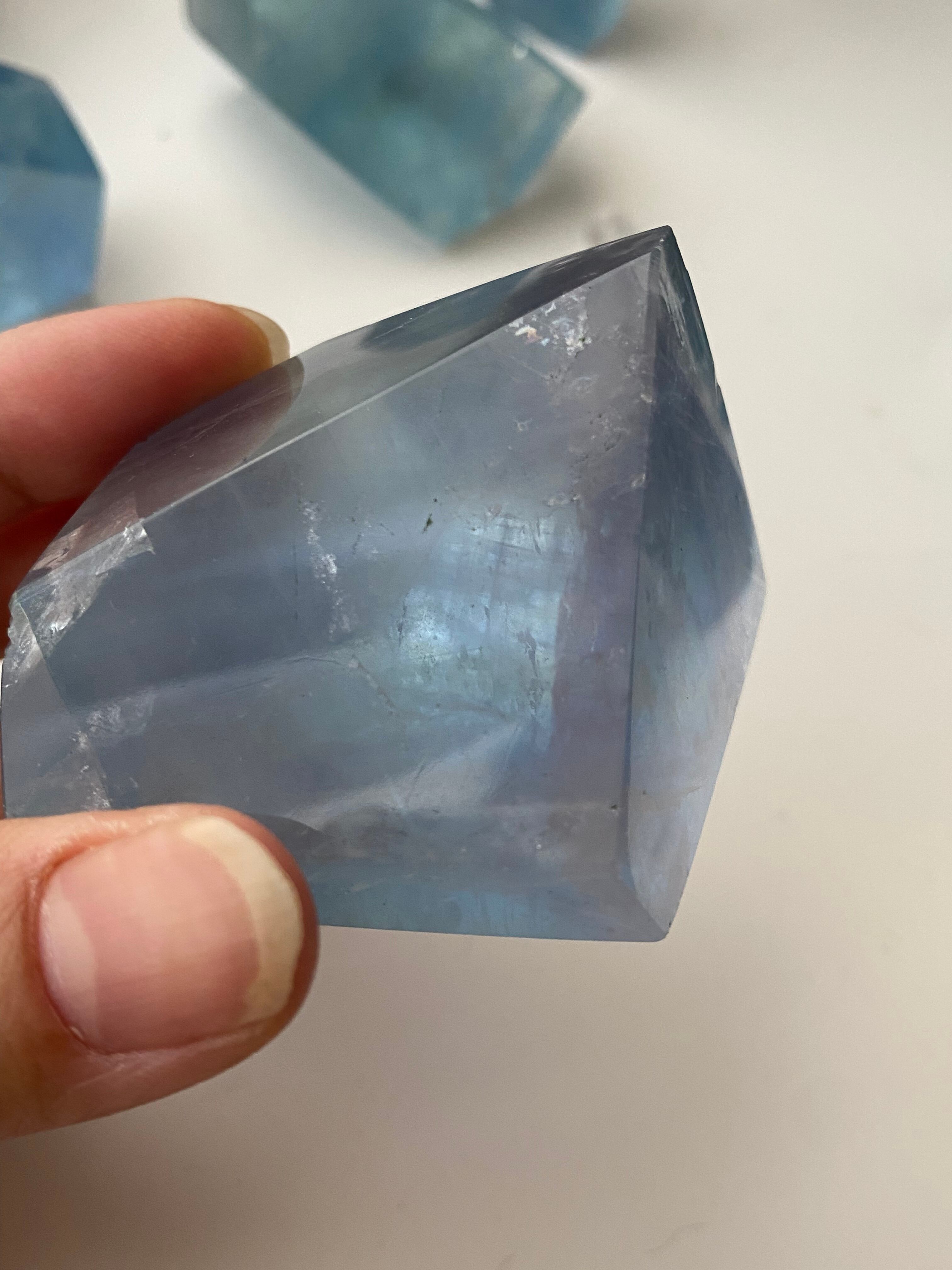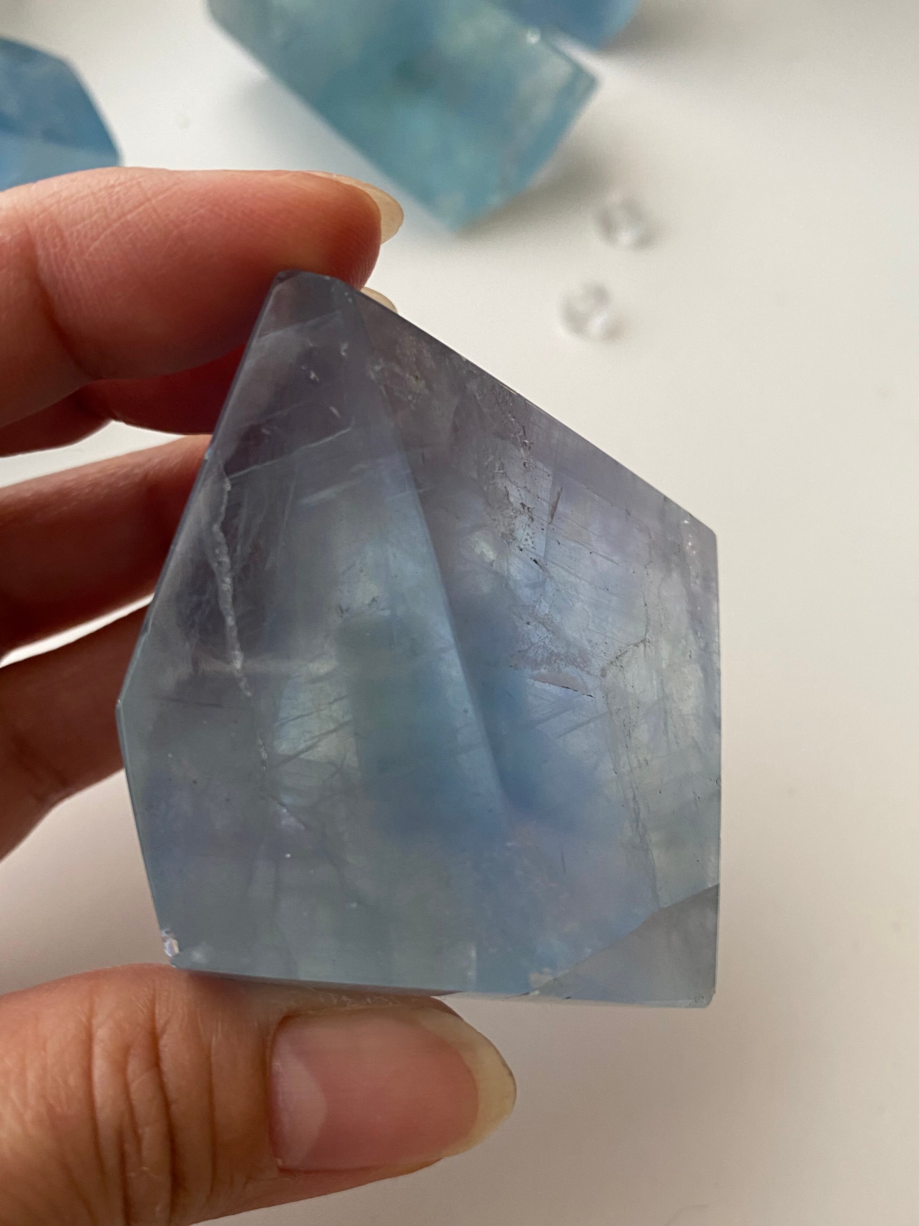 ◆ブルーフローライト◆ 爽やかなブルーが魅力的。 集中力や記憶力のアップ、さらにトラブルが起こった時でも冷静に対処できるようになるでしょう。 また人間関係を良好にしてくれると言われています。