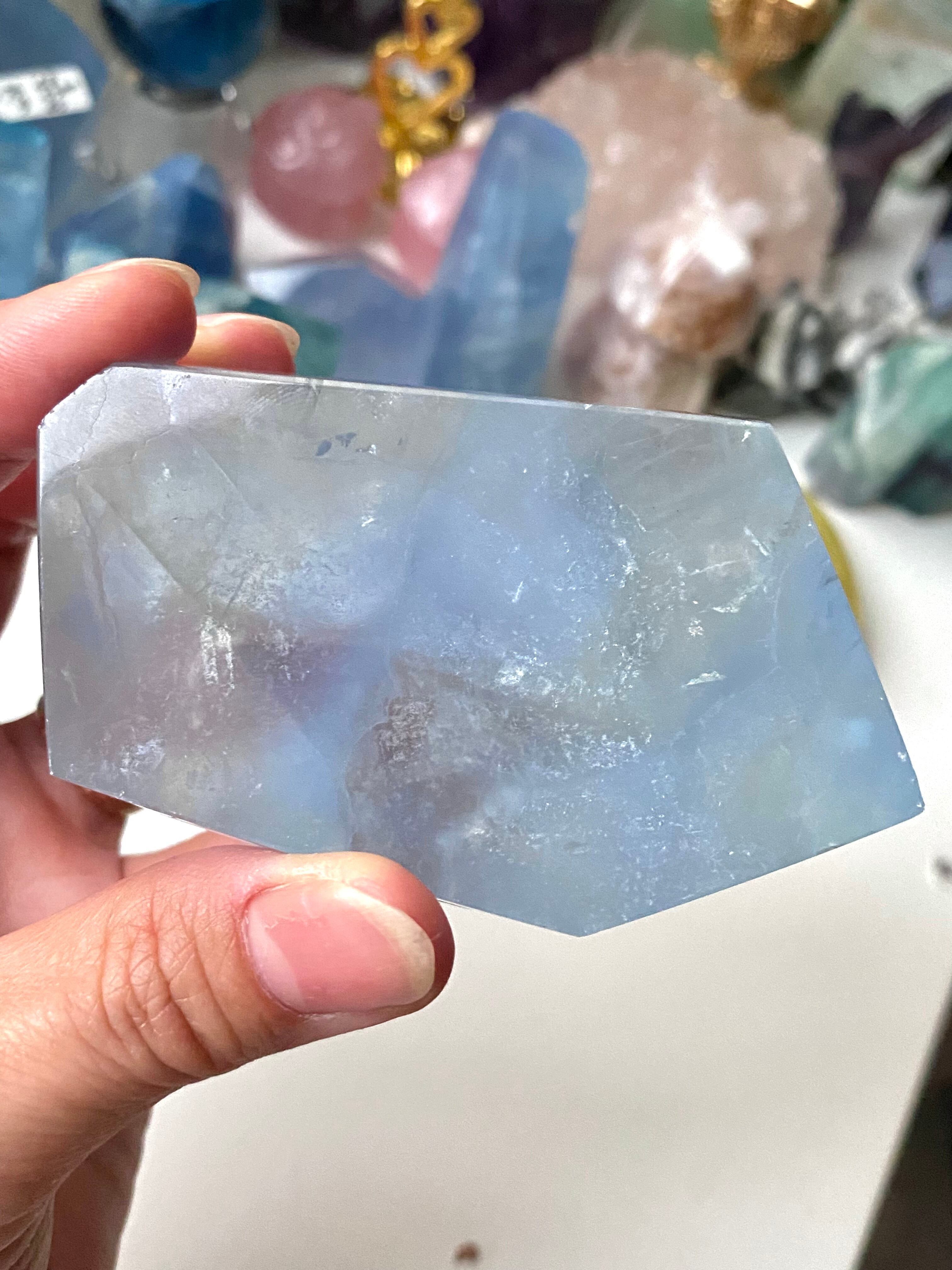 ◆ブルーフローライト◆ 爽やかなブルーが魅力的。 集中力や記憶力のアップ、さらにトラブルが起こった時でも冷静に対処できるようになるでしょう。 また人間関係を良好にしてくれると言われています。