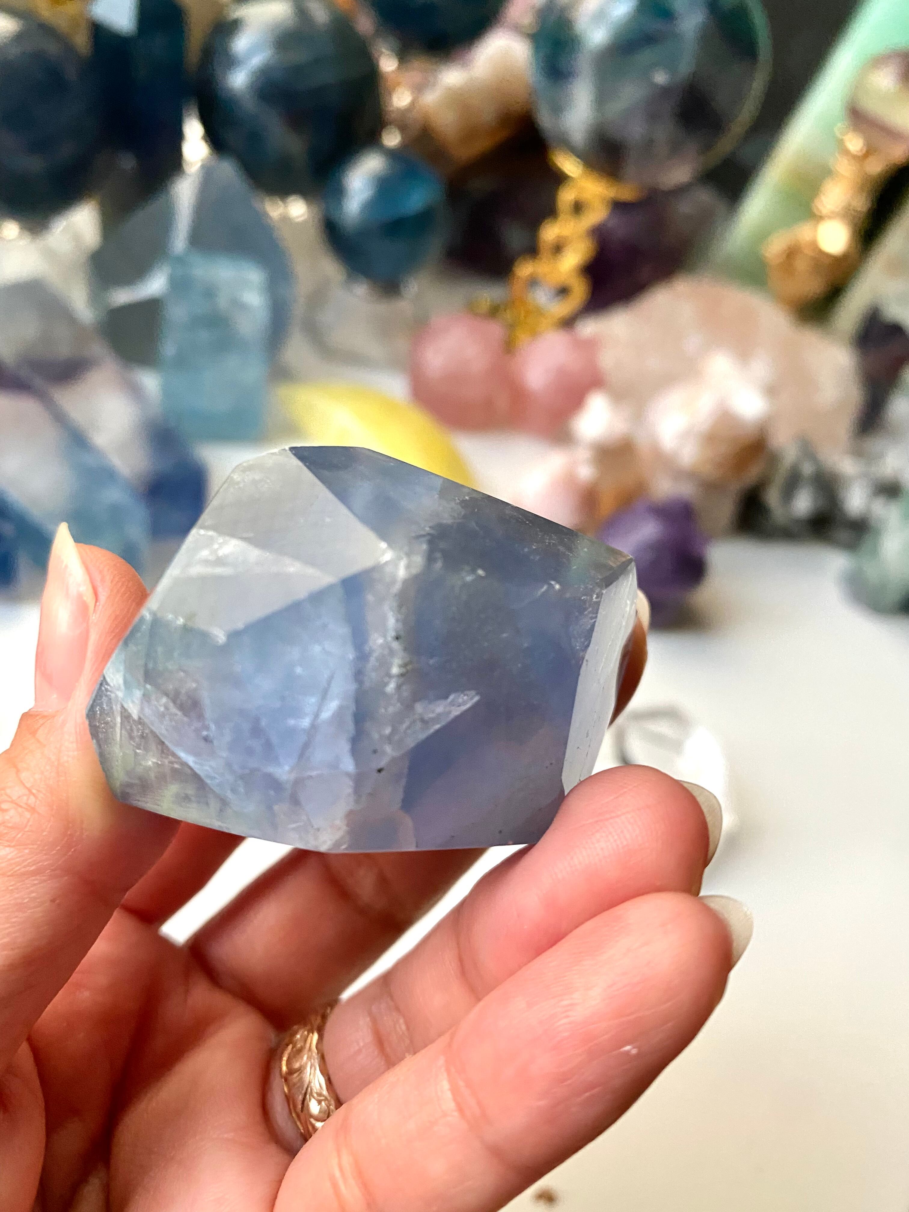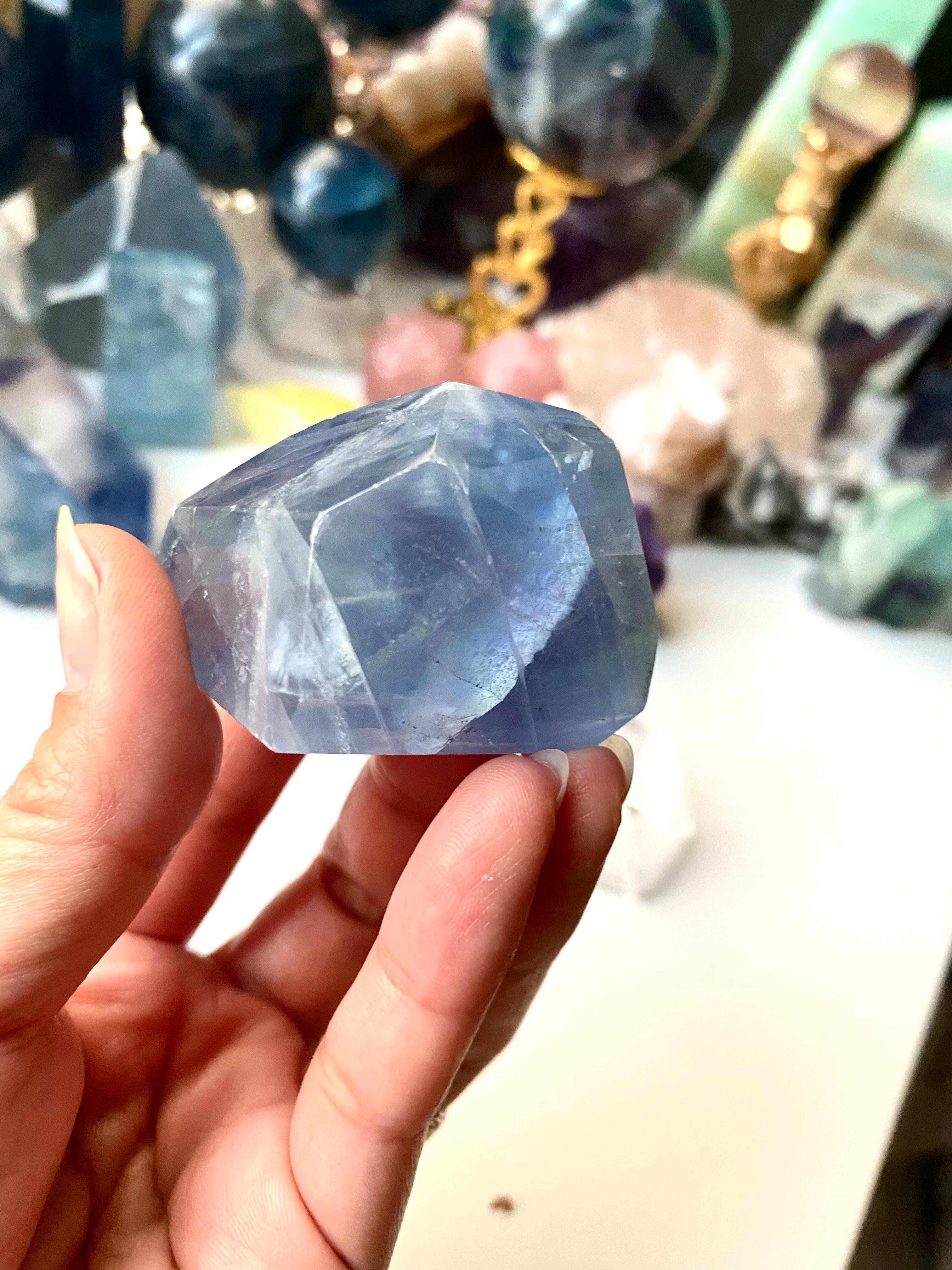 ◆ブルーフローライト◆ 爽やかなブルーが魅力的。 集中力や記憶力のアップ、さらにトラブルが起こった時でも冷静に対処できるようになるでしょう。 また人間関係を良好にしてくれると言われています。