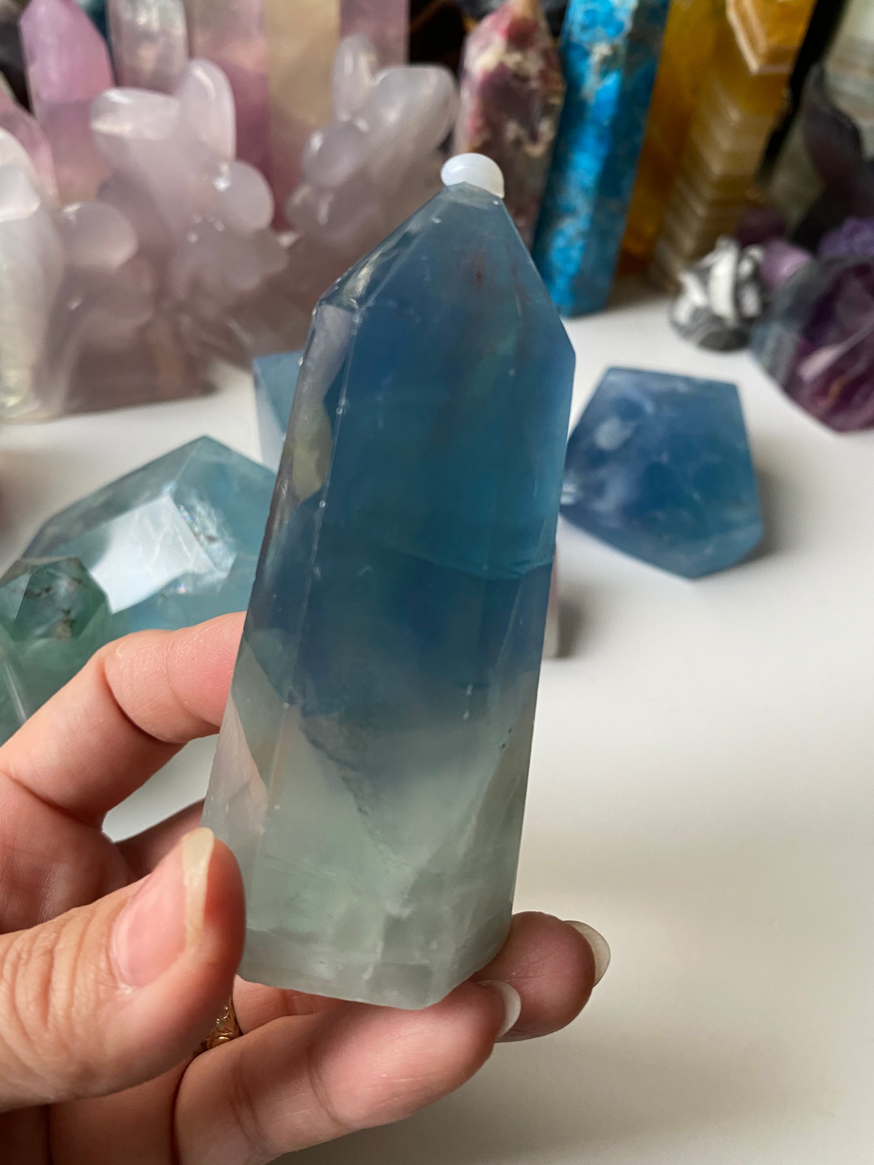 ◆ブルーフローライト◆ 爽やかなブルーが魅力的。 集中力や記憶力のアップ、さらにトラブルが起こった時でも冷静に対処できるようになるでしょう。 また人間関係を良好にしてくれると言われています。