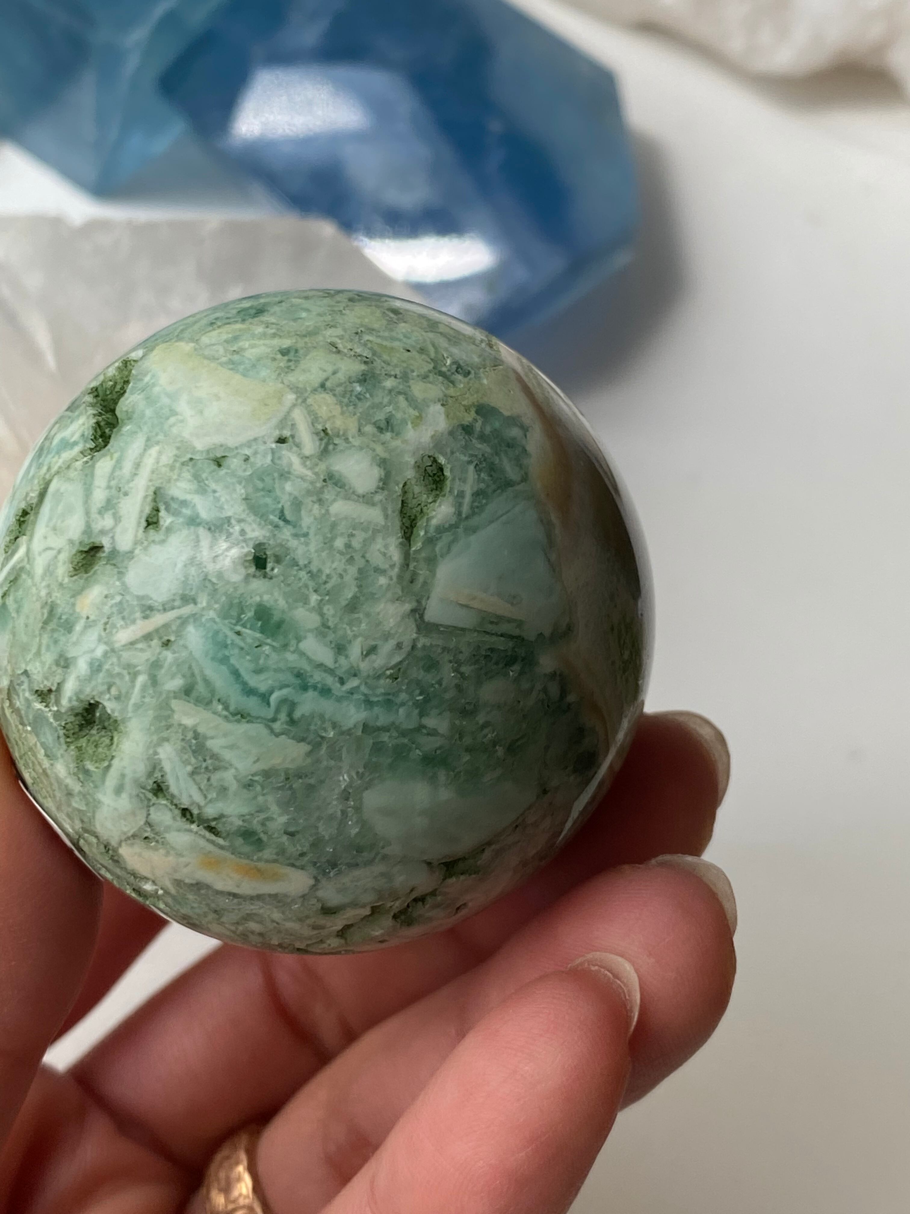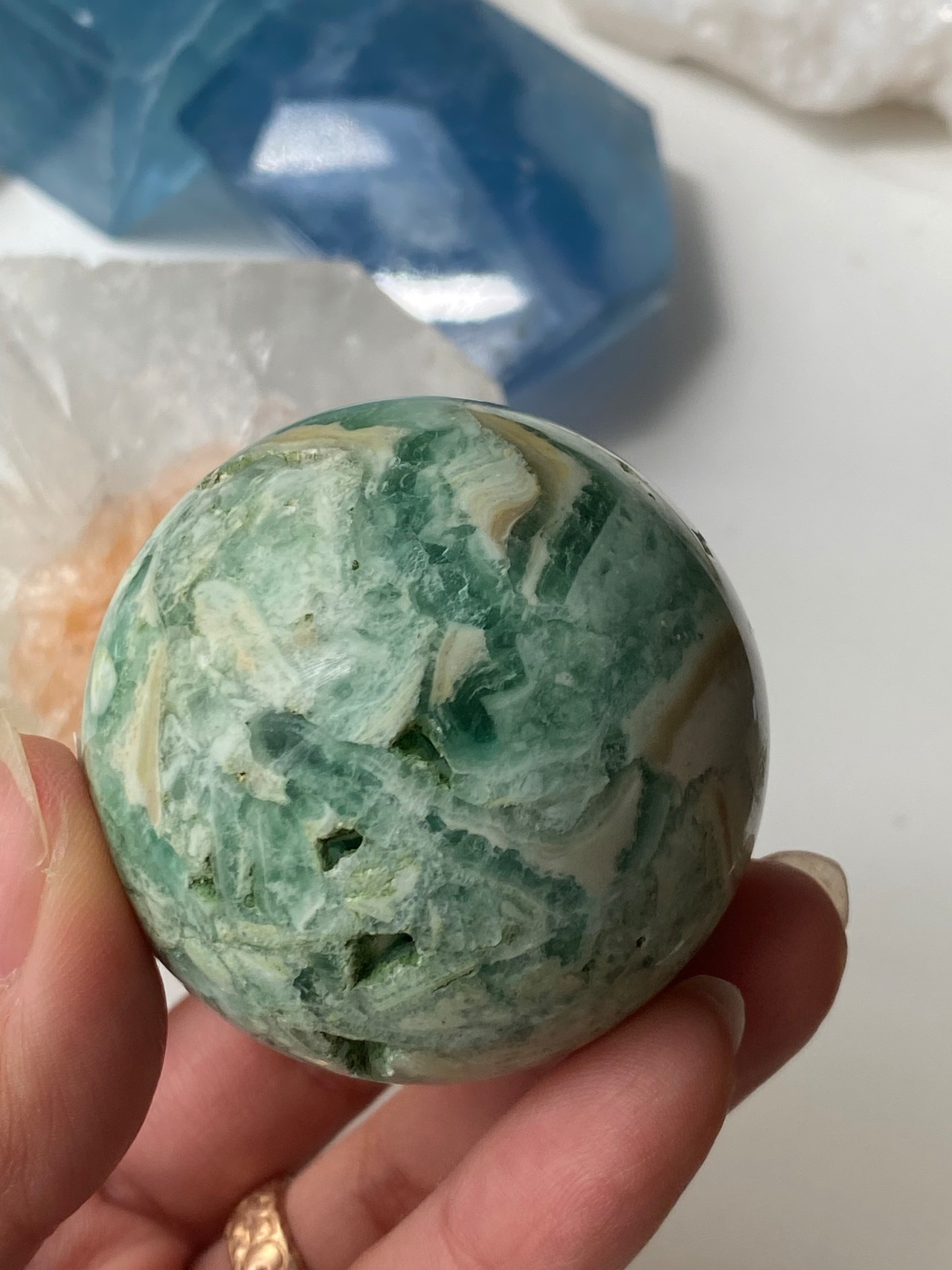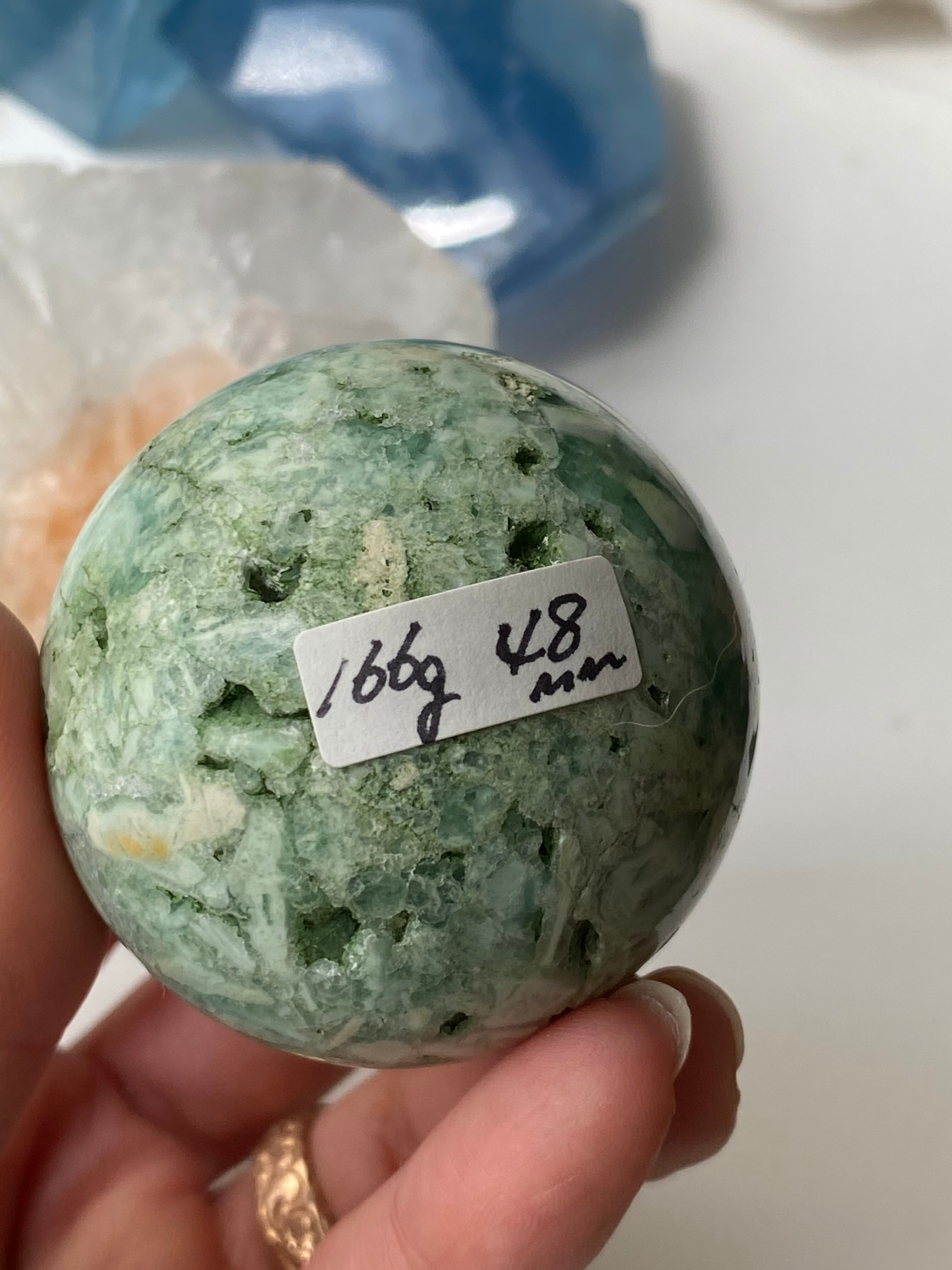 鮮やかなグリーンと、半透明、白い部分はキラキラ光るジオードになっています!