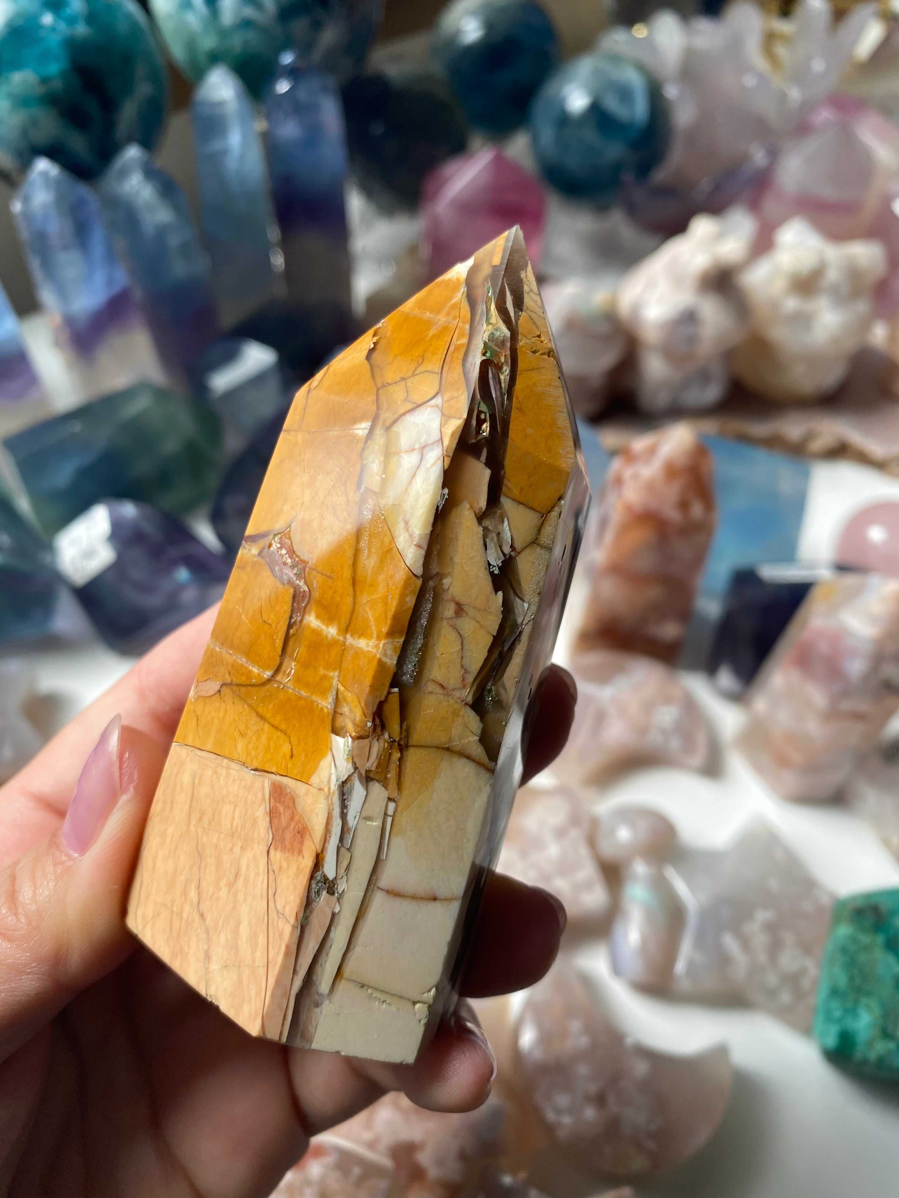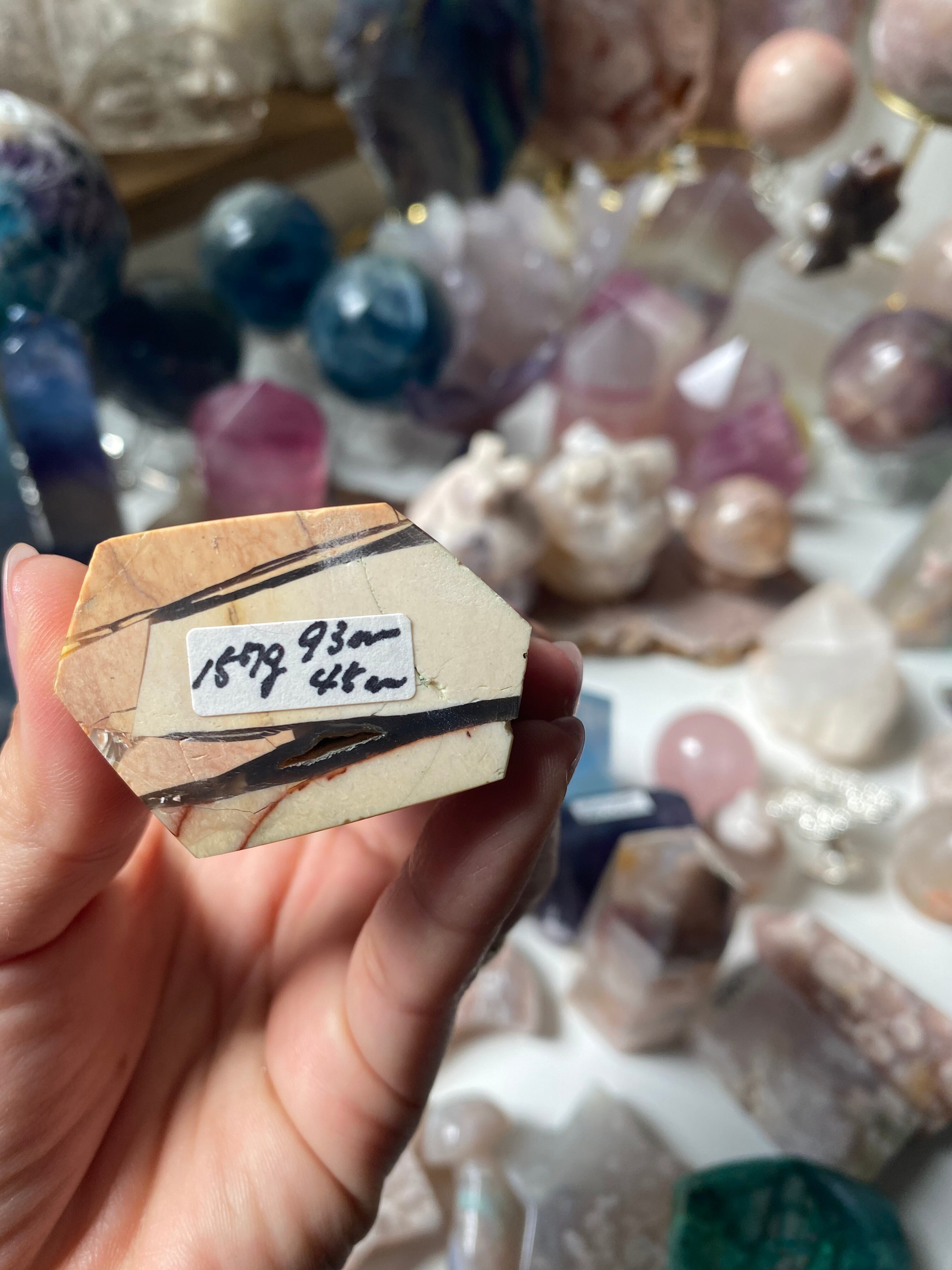 とても珍しいお石…アイビスジャスパー! 重なり合っていく鉱物がパズルのようになっており そこにまた ジオードが出来ているようで ところどころに細かなものが見られます。 不思議感満載です。 ジャスパーなので様々な不純物を含みこのような、お色味なのだと思われます。 地球の鉱物の面白さ 自然の凄さアートをお楽しみいただける 素敵な逸品です。