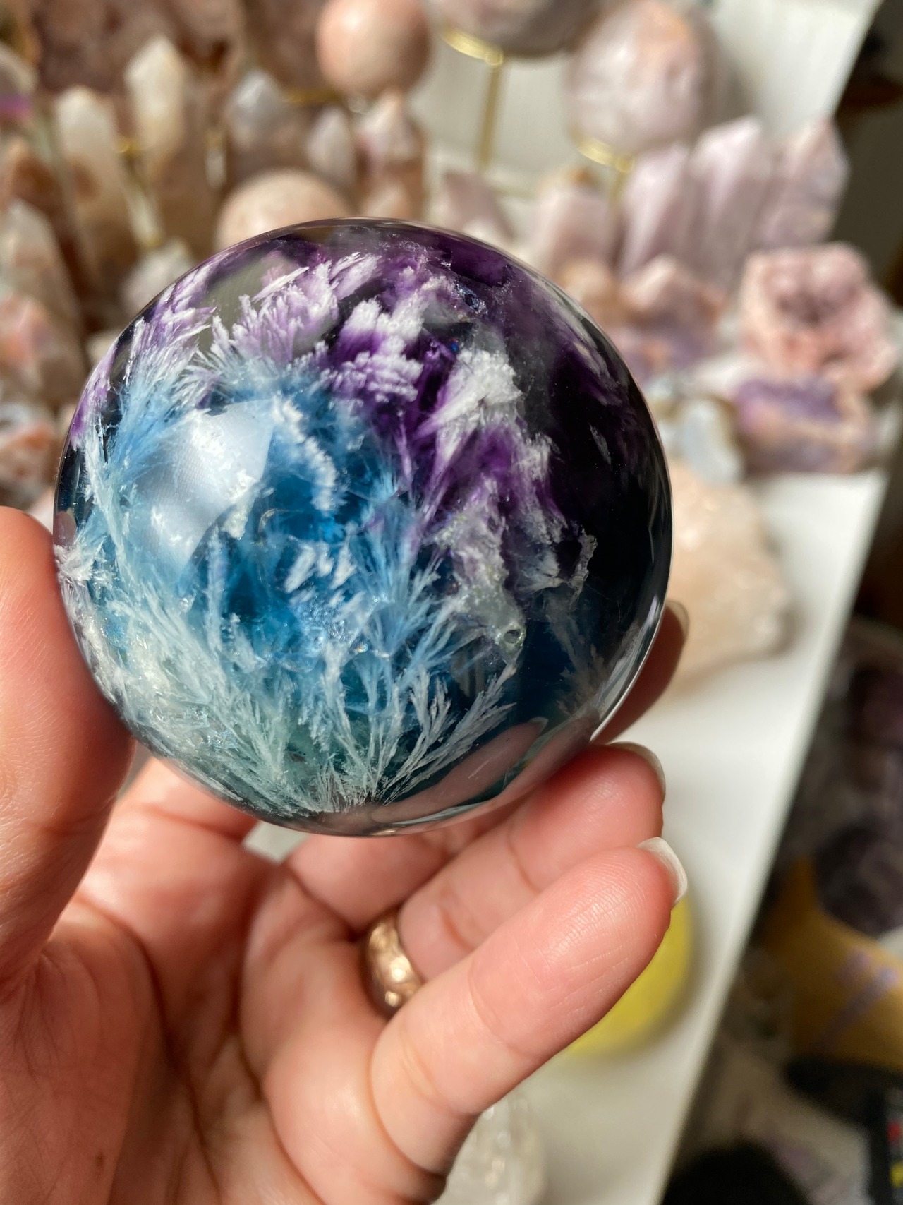 高品質なエンジェルフェザーのフローライトスフィアです⭐︎