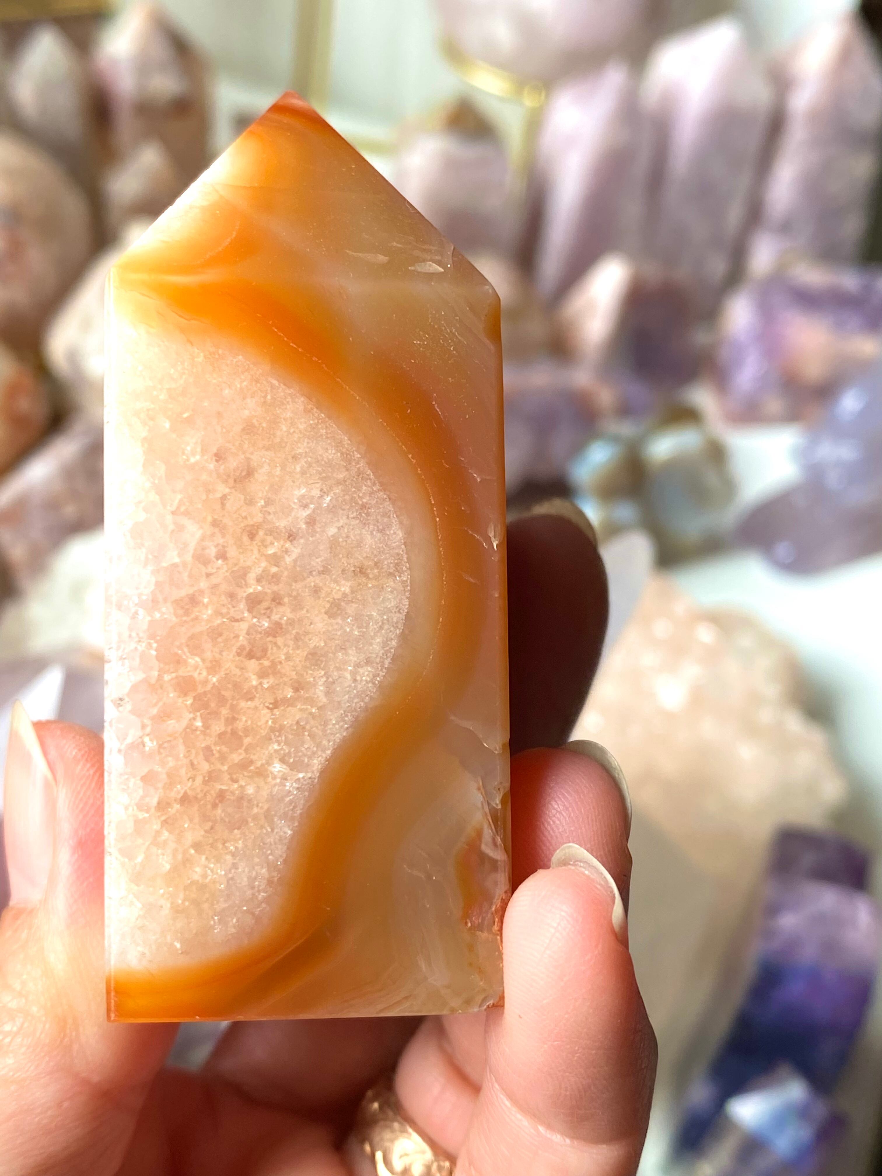 ジオードザクザクキラキラ⭐︎で縞模様の曲線がなんとも言えないくらい芸術的なカーネリアンタワーです⭐︎