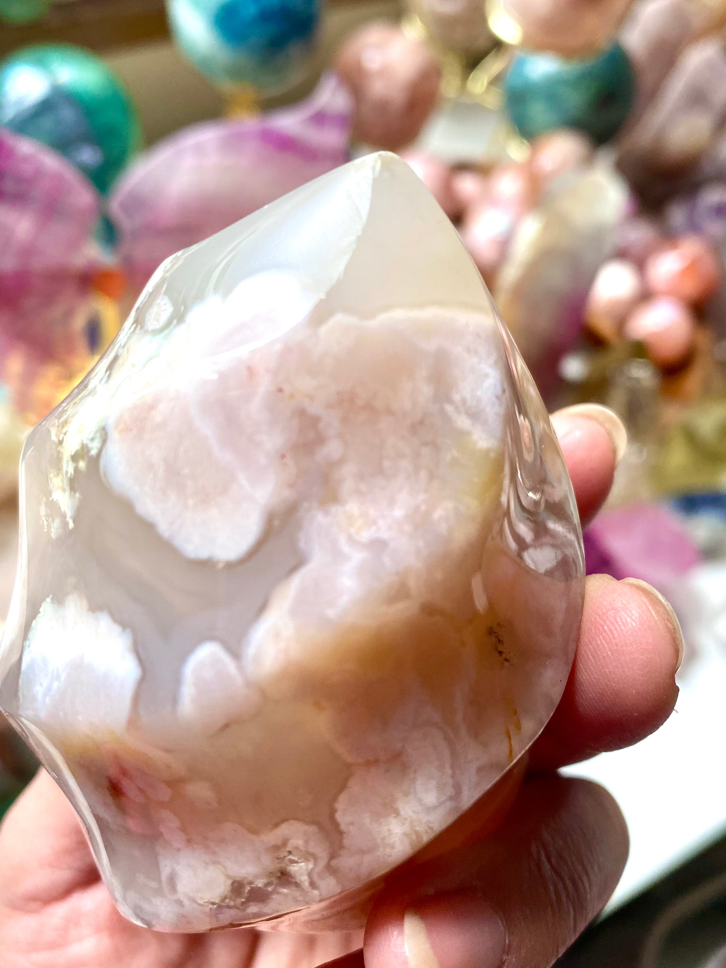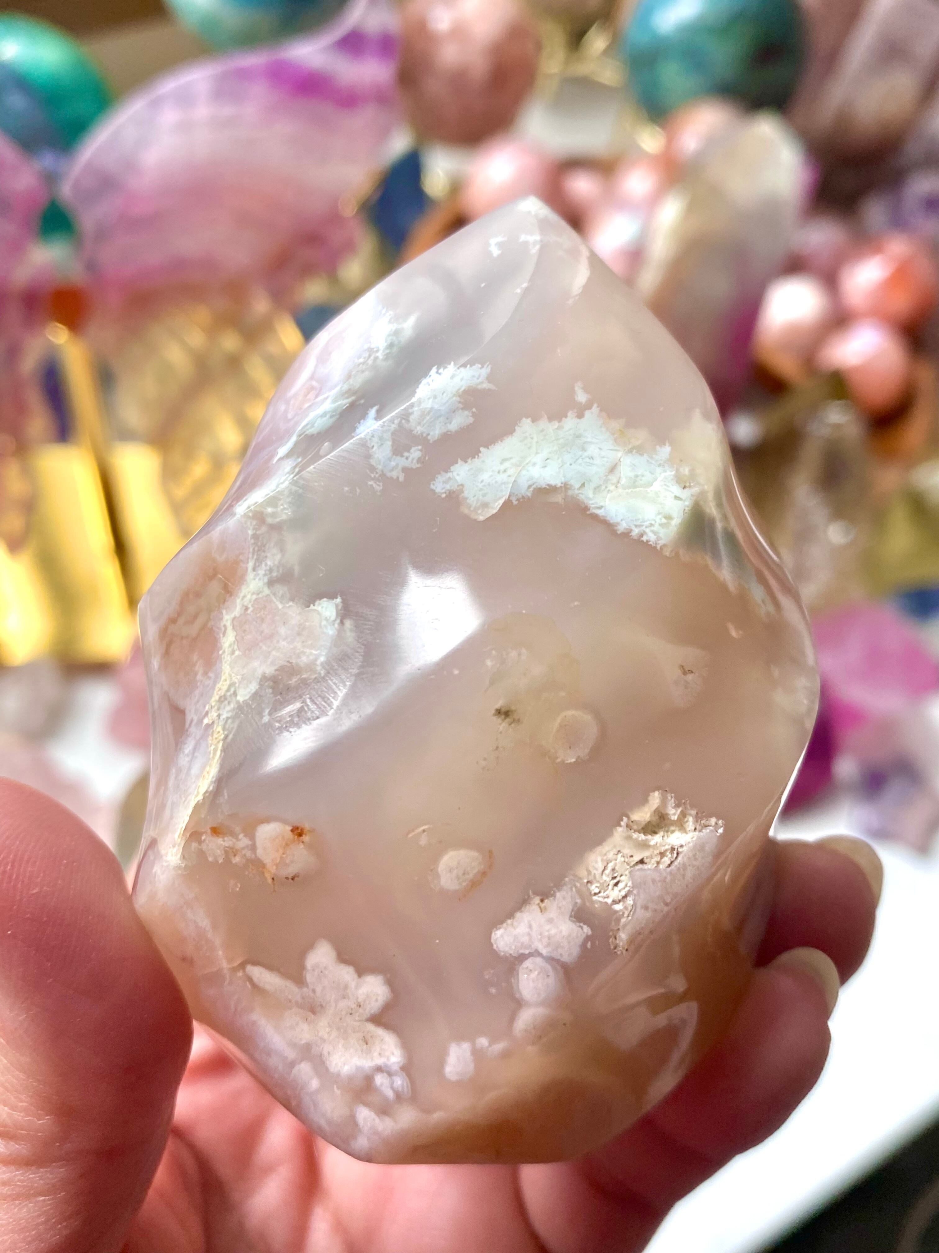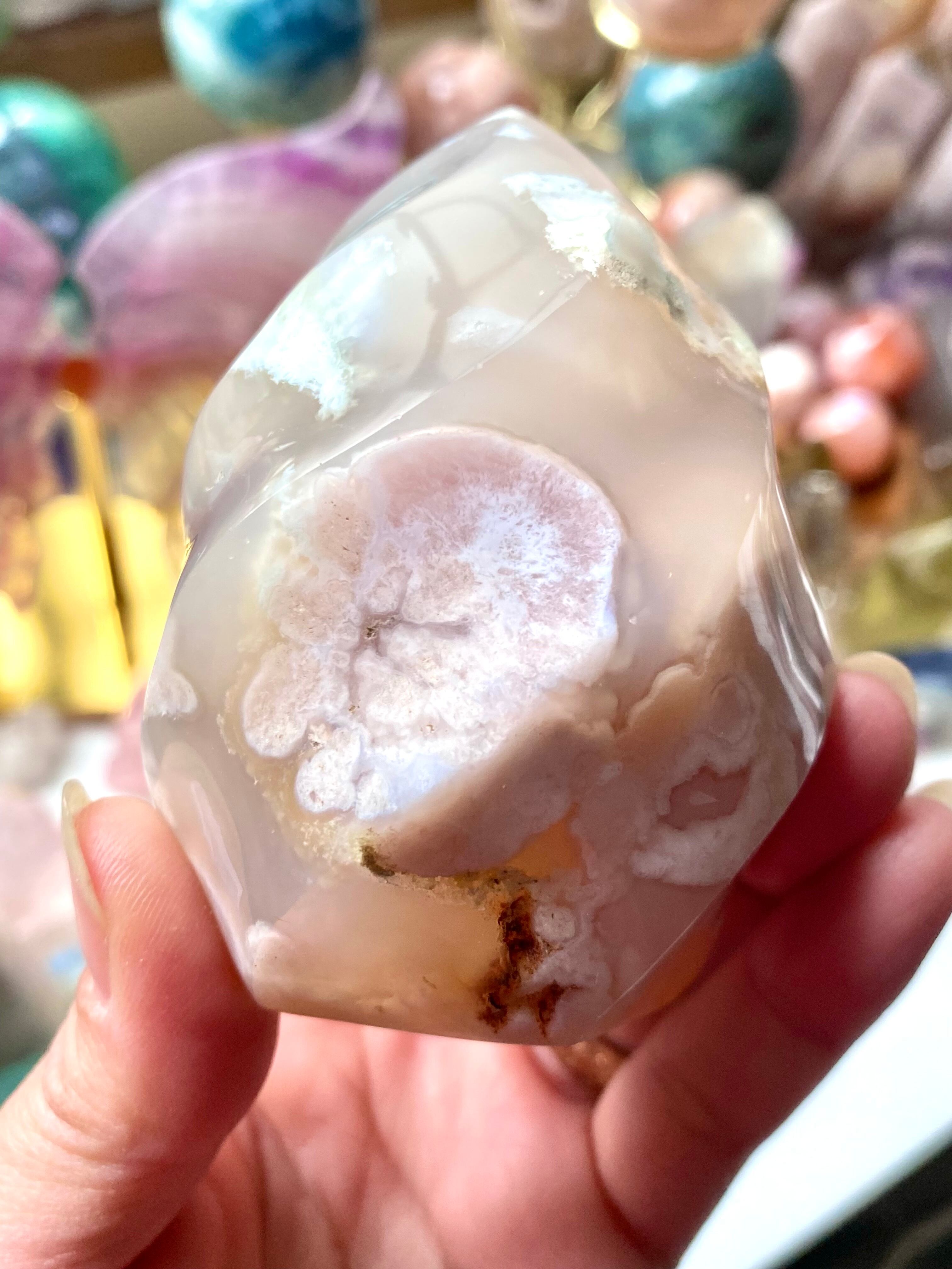 チェリーブロッサムアゲートは、幻想的な模様をしたパワーストーンです。 内部の模様が、「桜の花」に見えます。 「桜瑪瑙(さくらめのう)」(Sakura Agate/サクラアゲート)とも呼ばれるでしょう。 桜を好む方にオススメの、パワーストーンです。