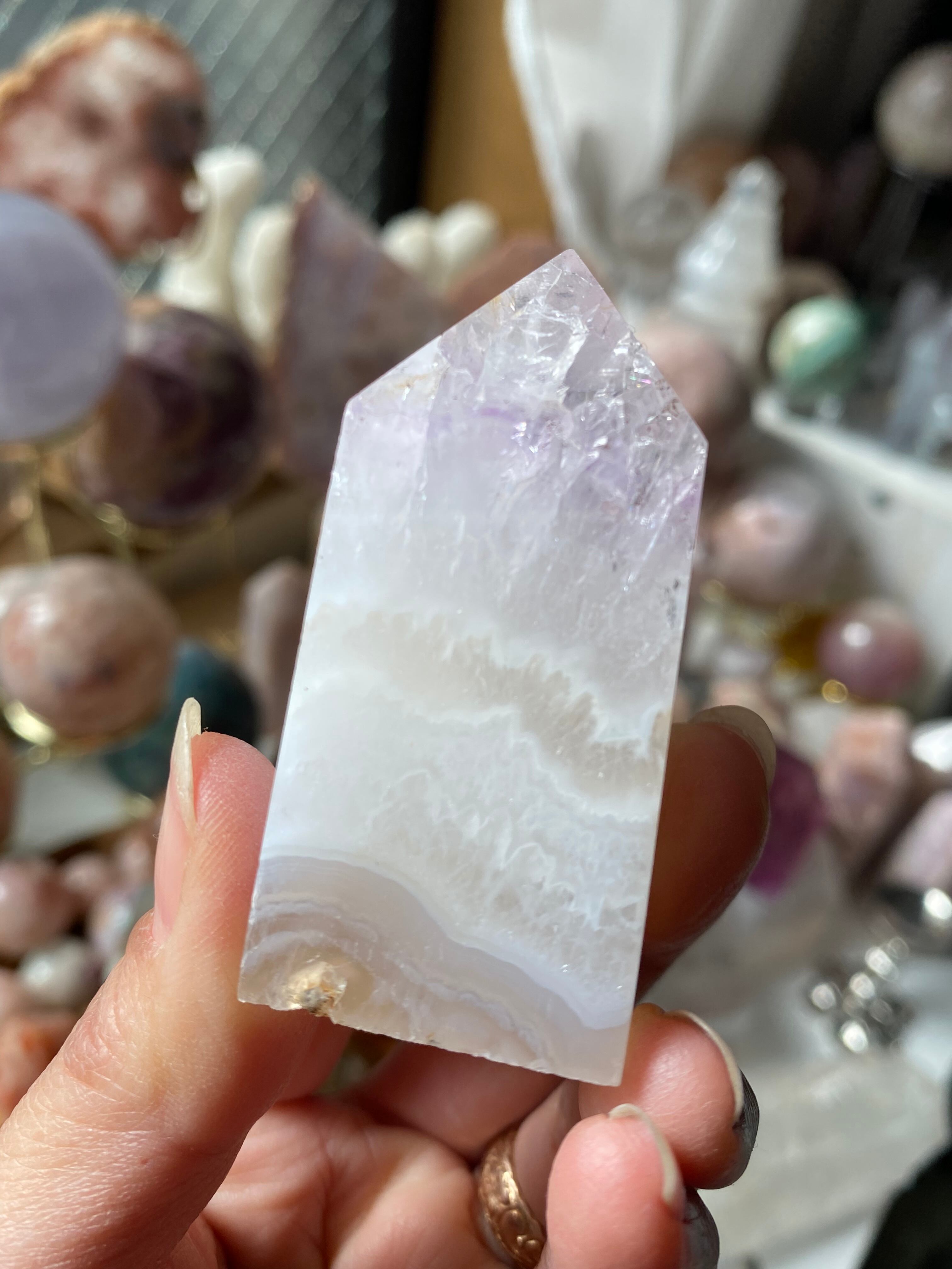 アメジストと、クリスタル、1番下の部分にはアゲートまで共生しているキラキラ美しいtowerです♡