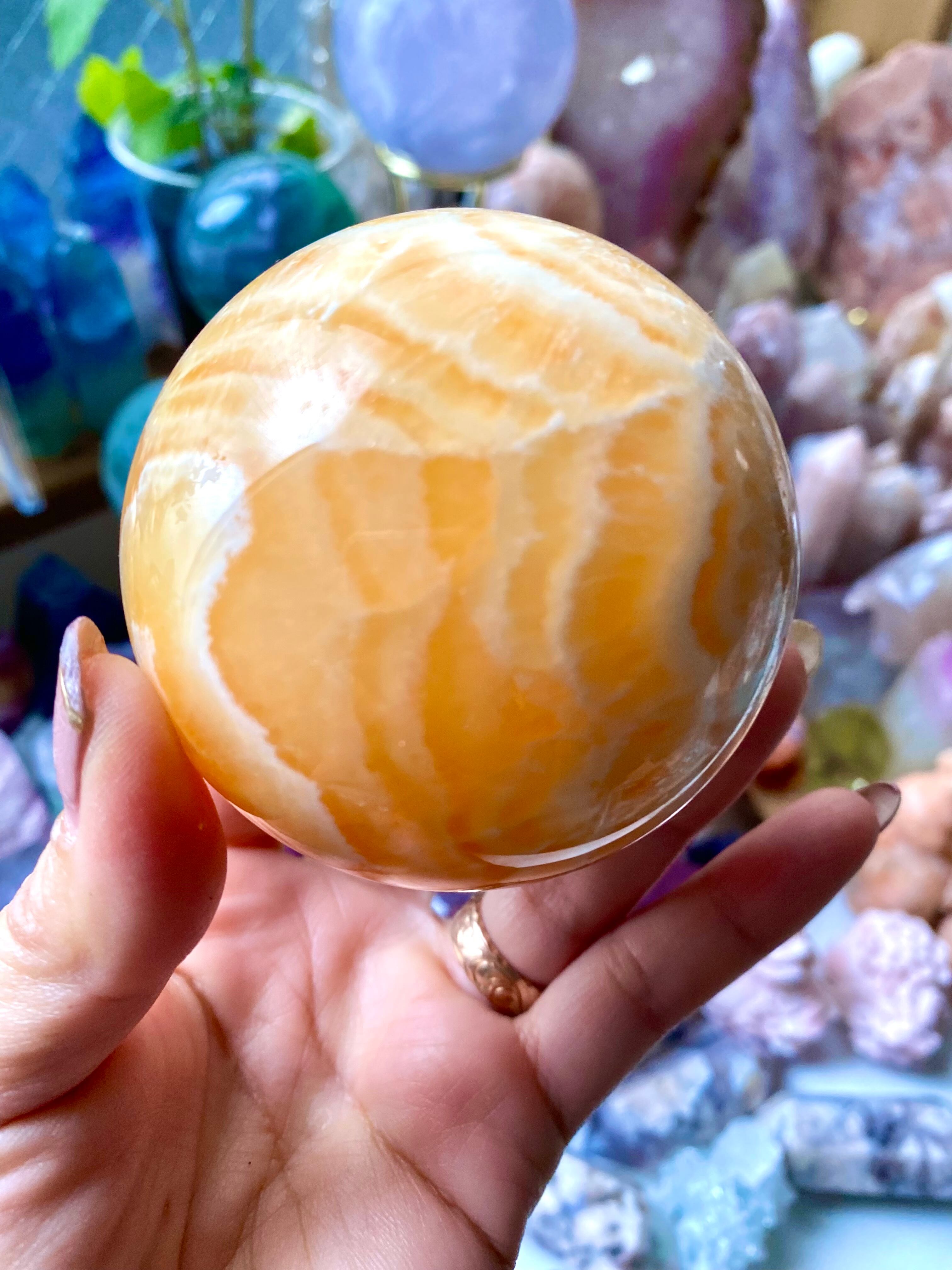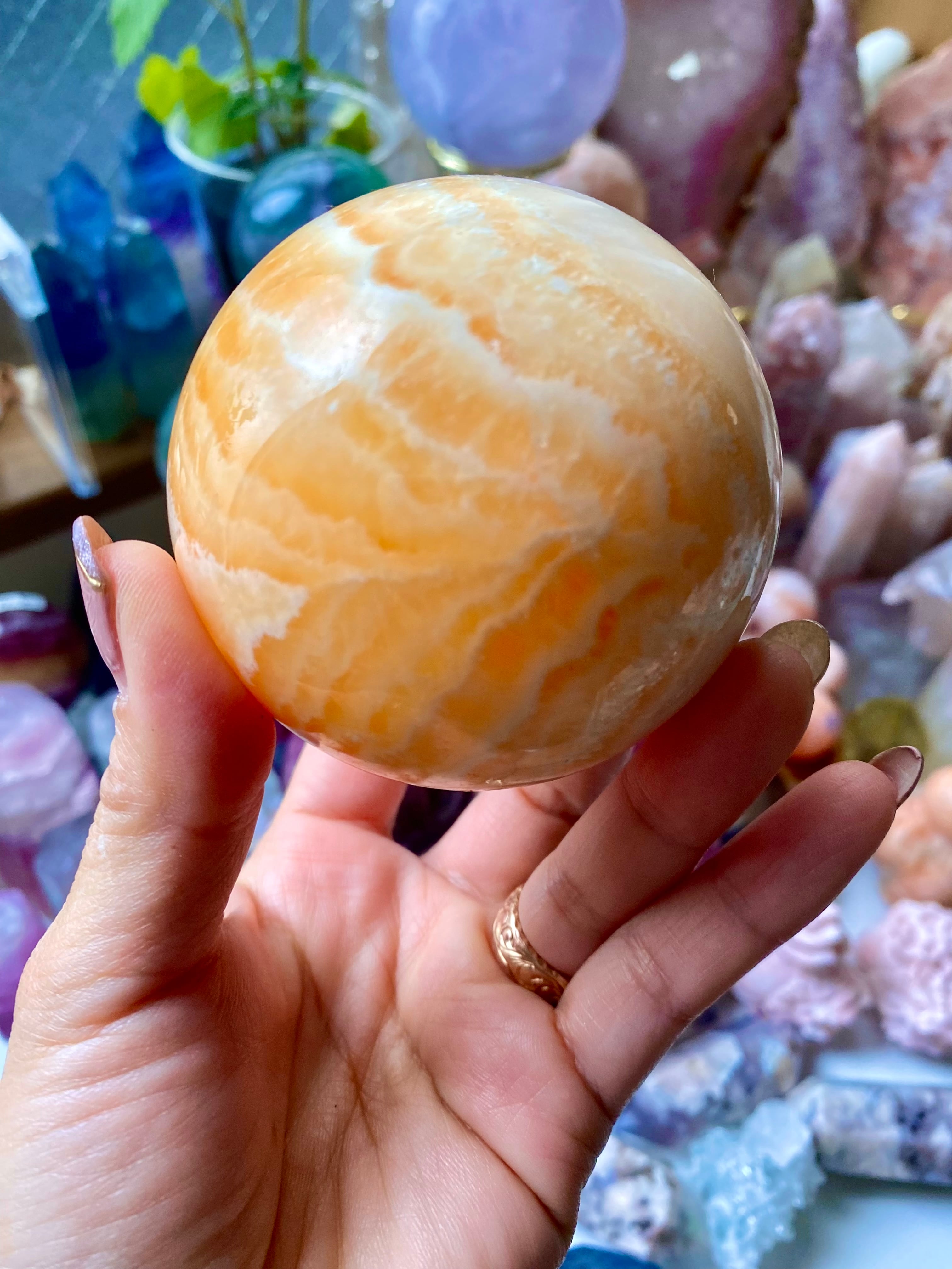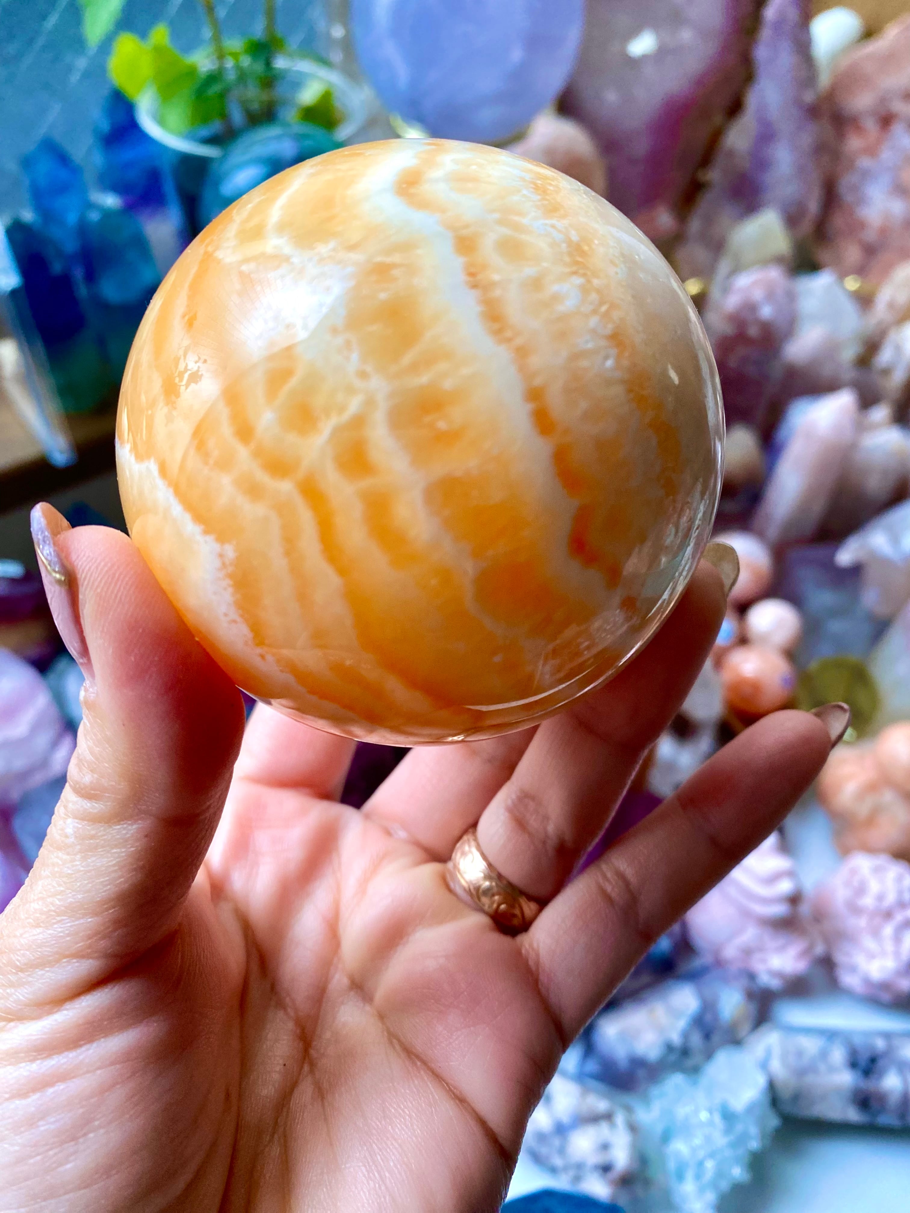 497gとどっしり!存在感抜群で癒し効果や元気が出る鮮やかなオレンジカラーのオレンジカルサイトのスフィアです♡
