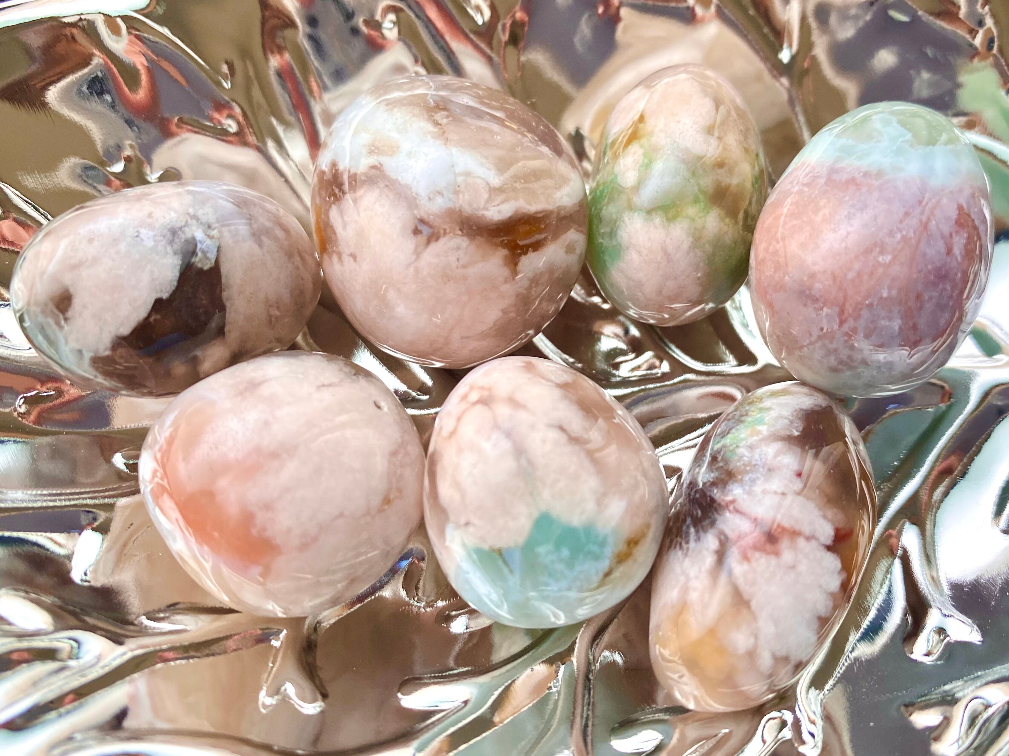 グリーンやピンク、ミックスカラーのカラフルキュートな桜瑪瑙タンブル7個SETです♡