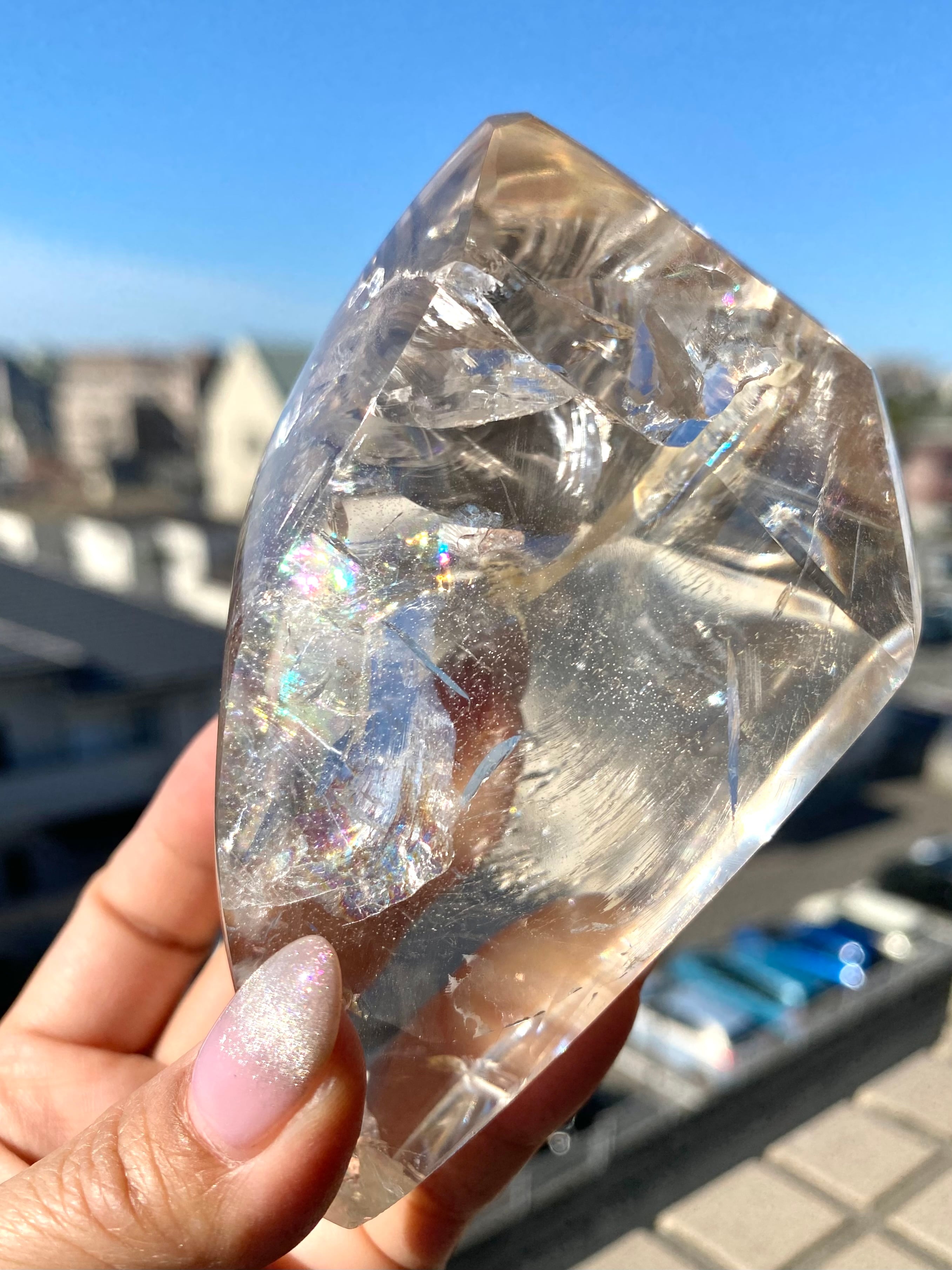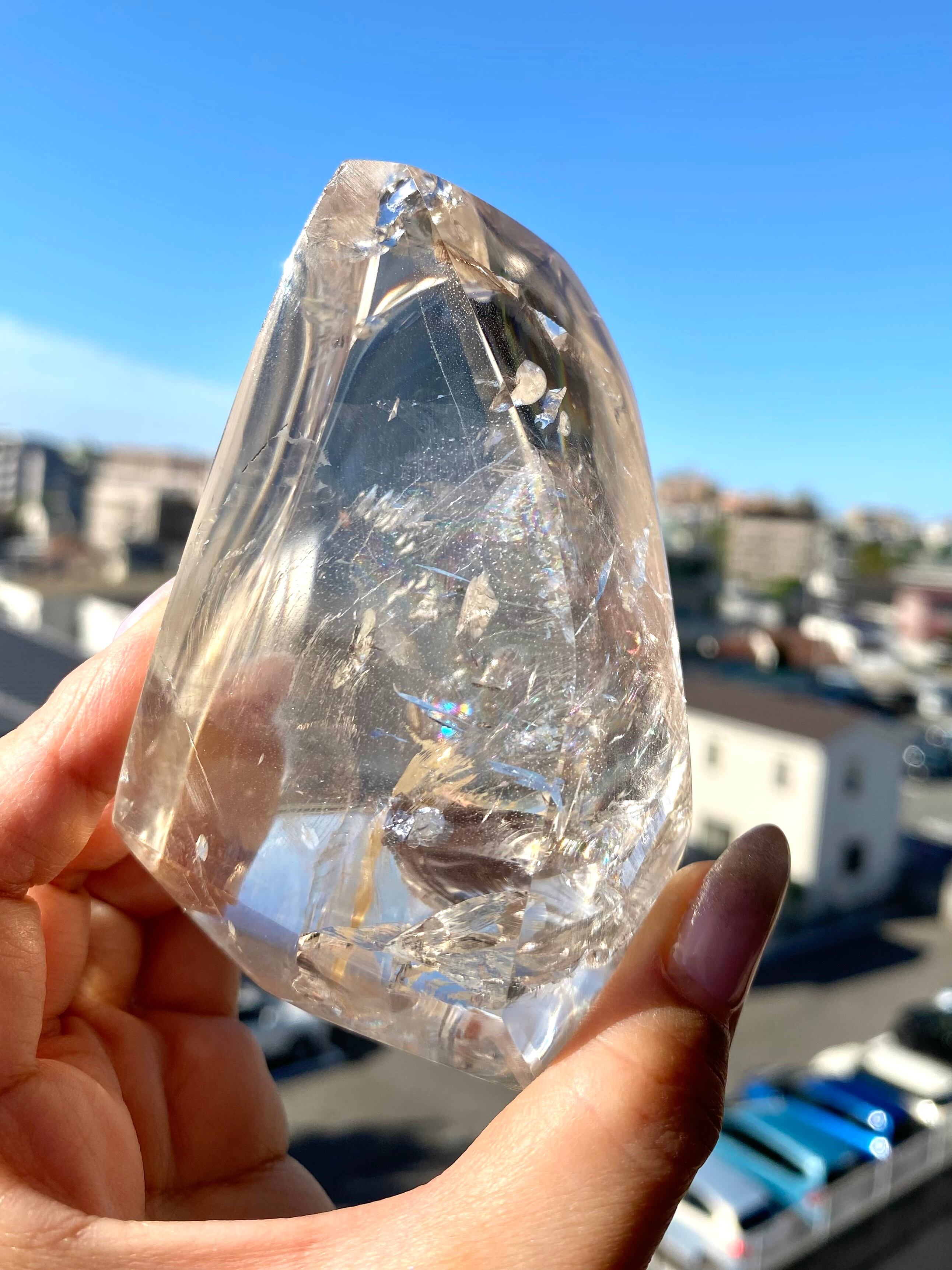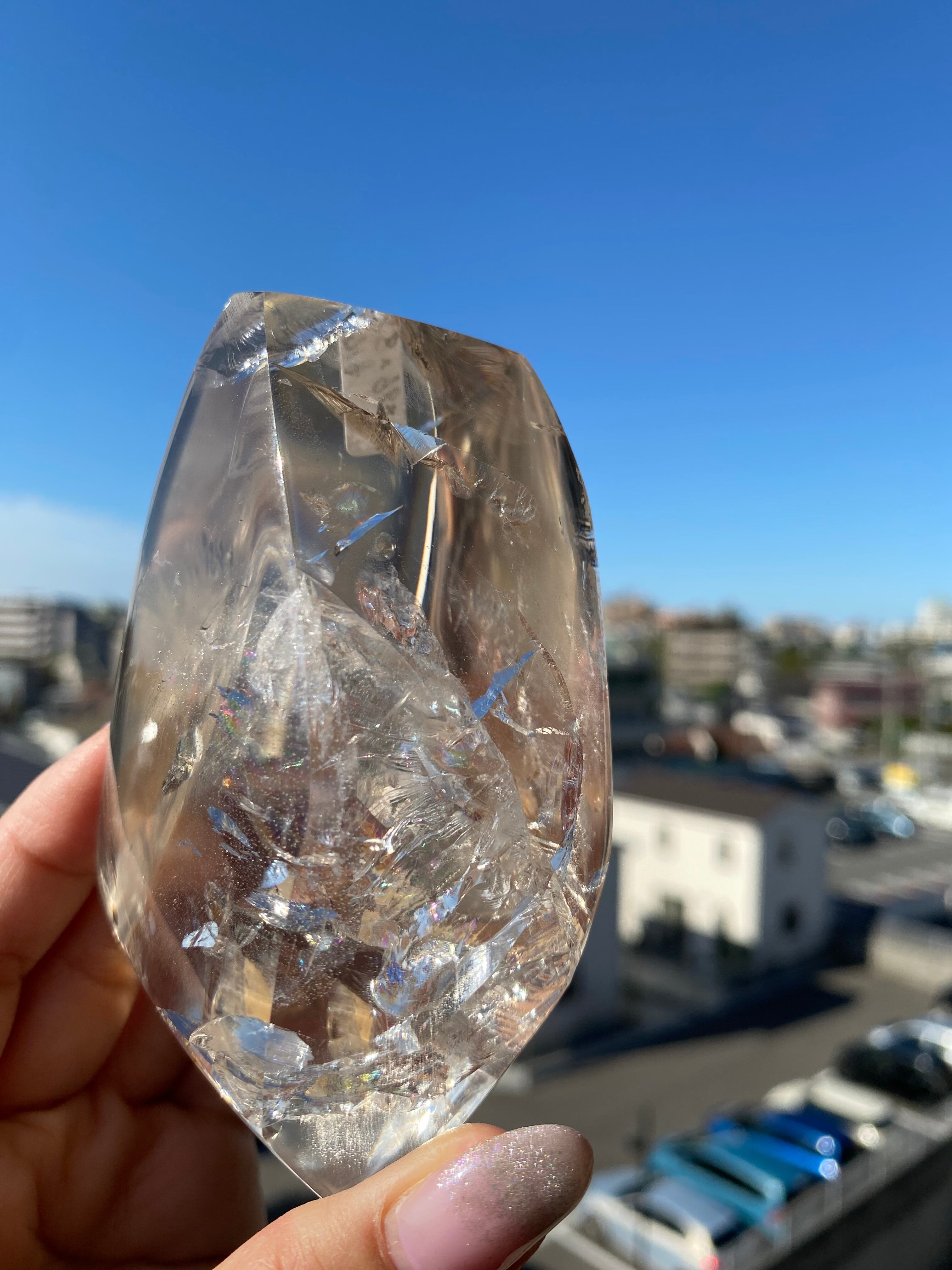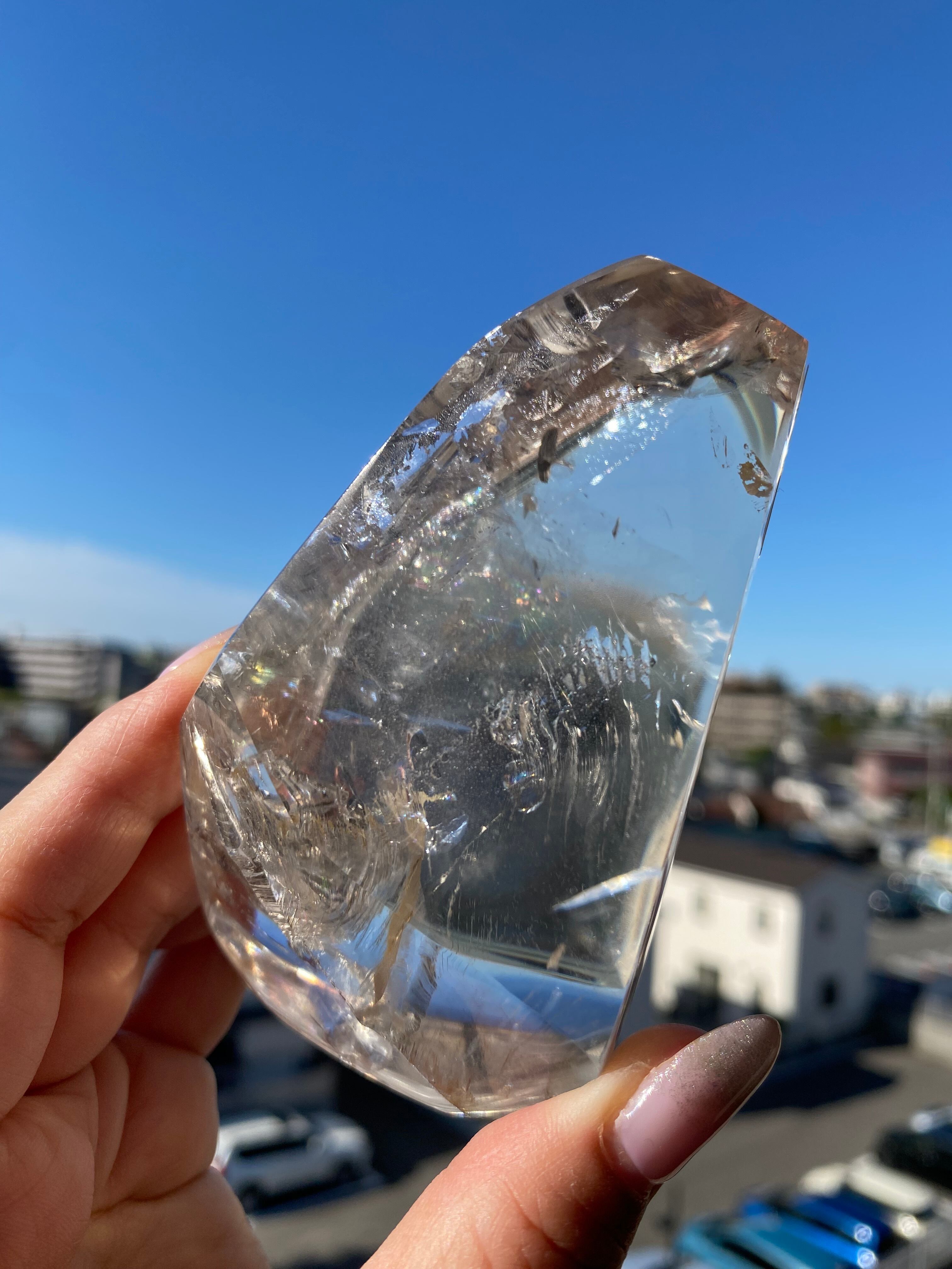 大きな虹入り⭐︎存在感抜群のクリアクォーツFreeフォームです!!少しスモーキーがかって透明感抜群!