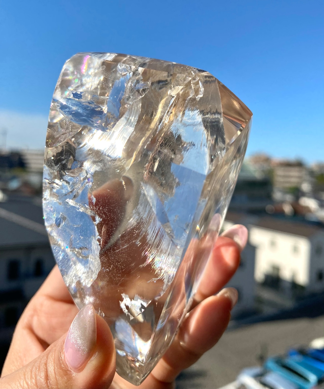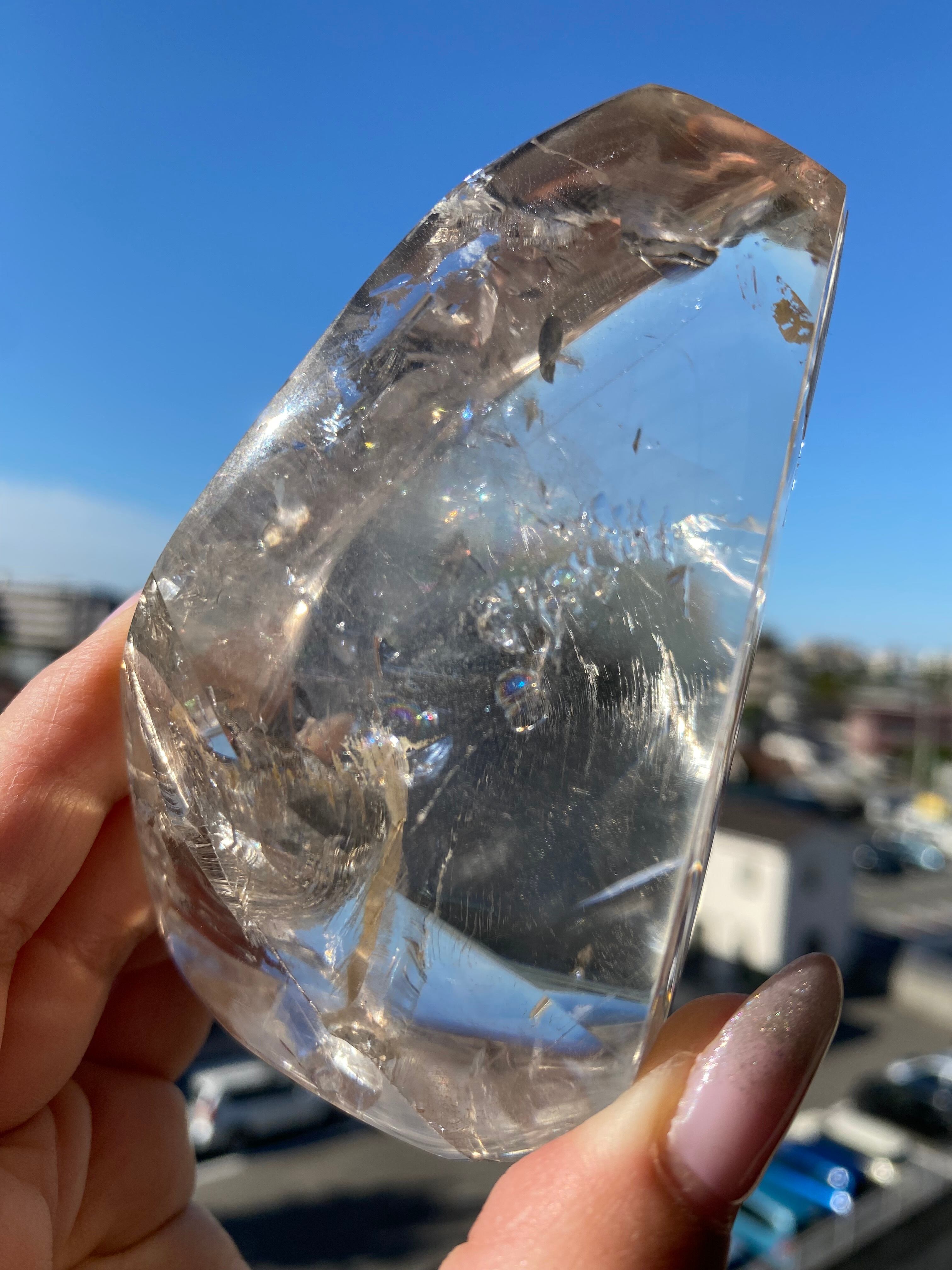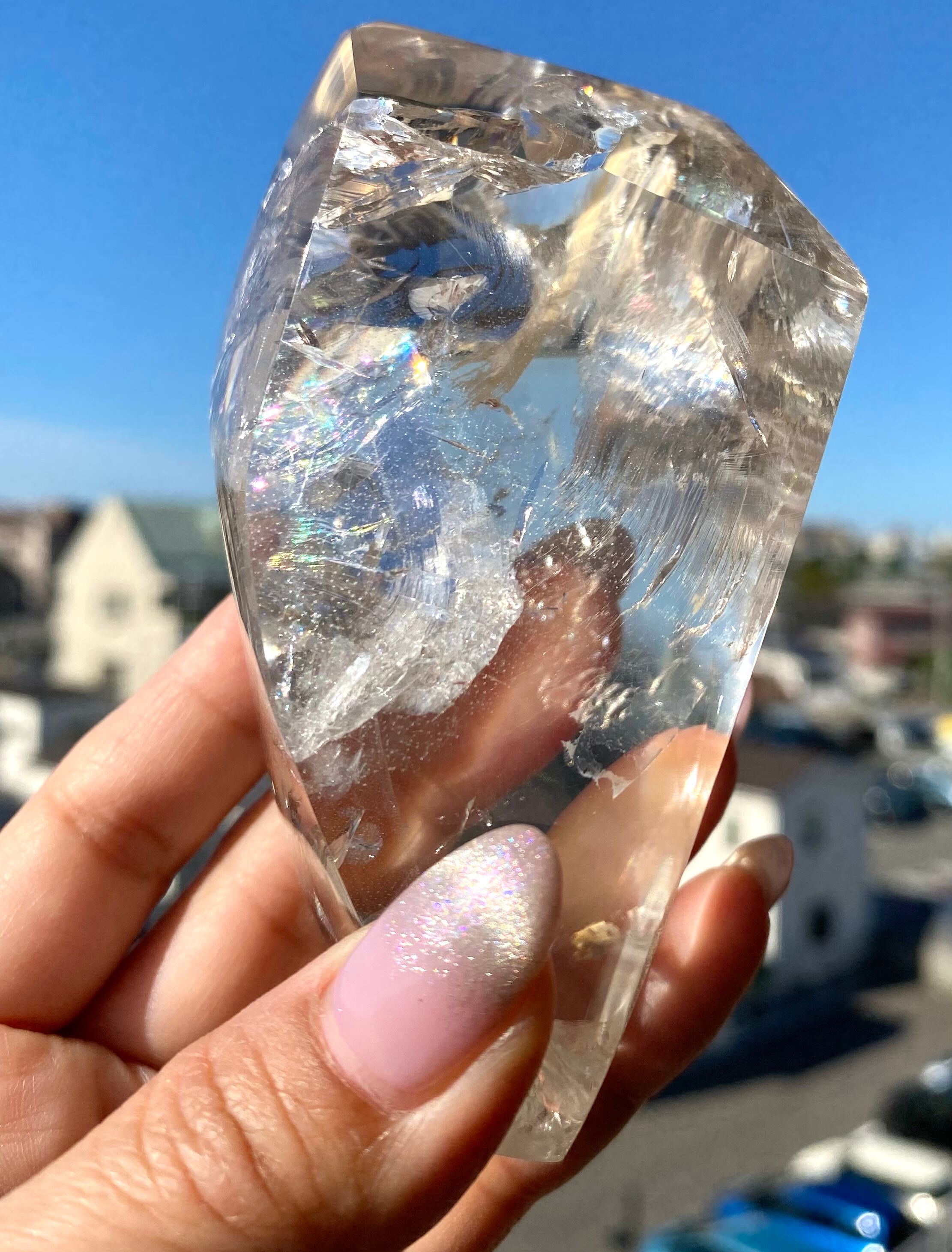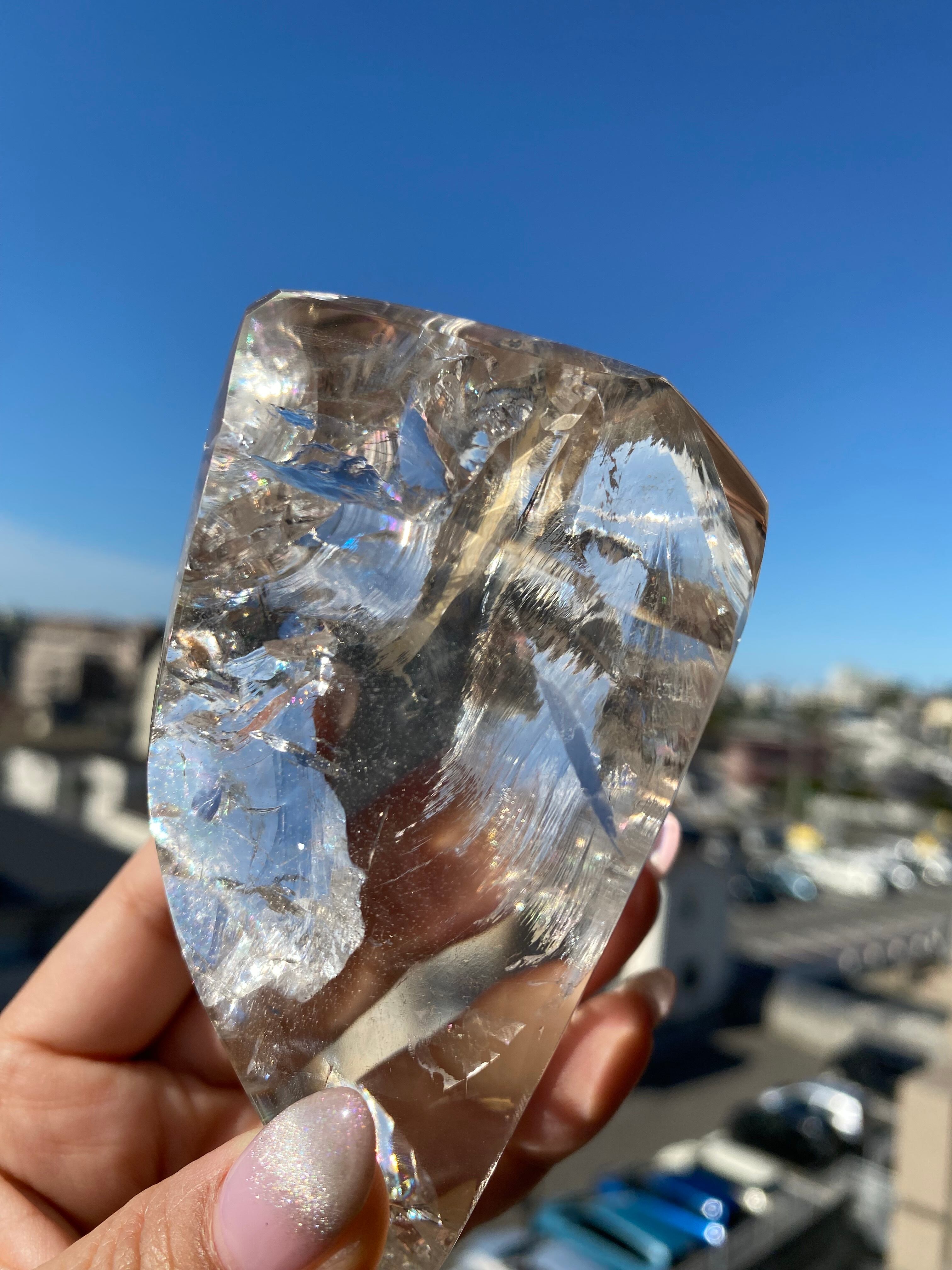 大きな虹入り⭐︎存在感抜群のクリアクォーツFreeフォームです!!少しスモーキーがかって透明感抜群!