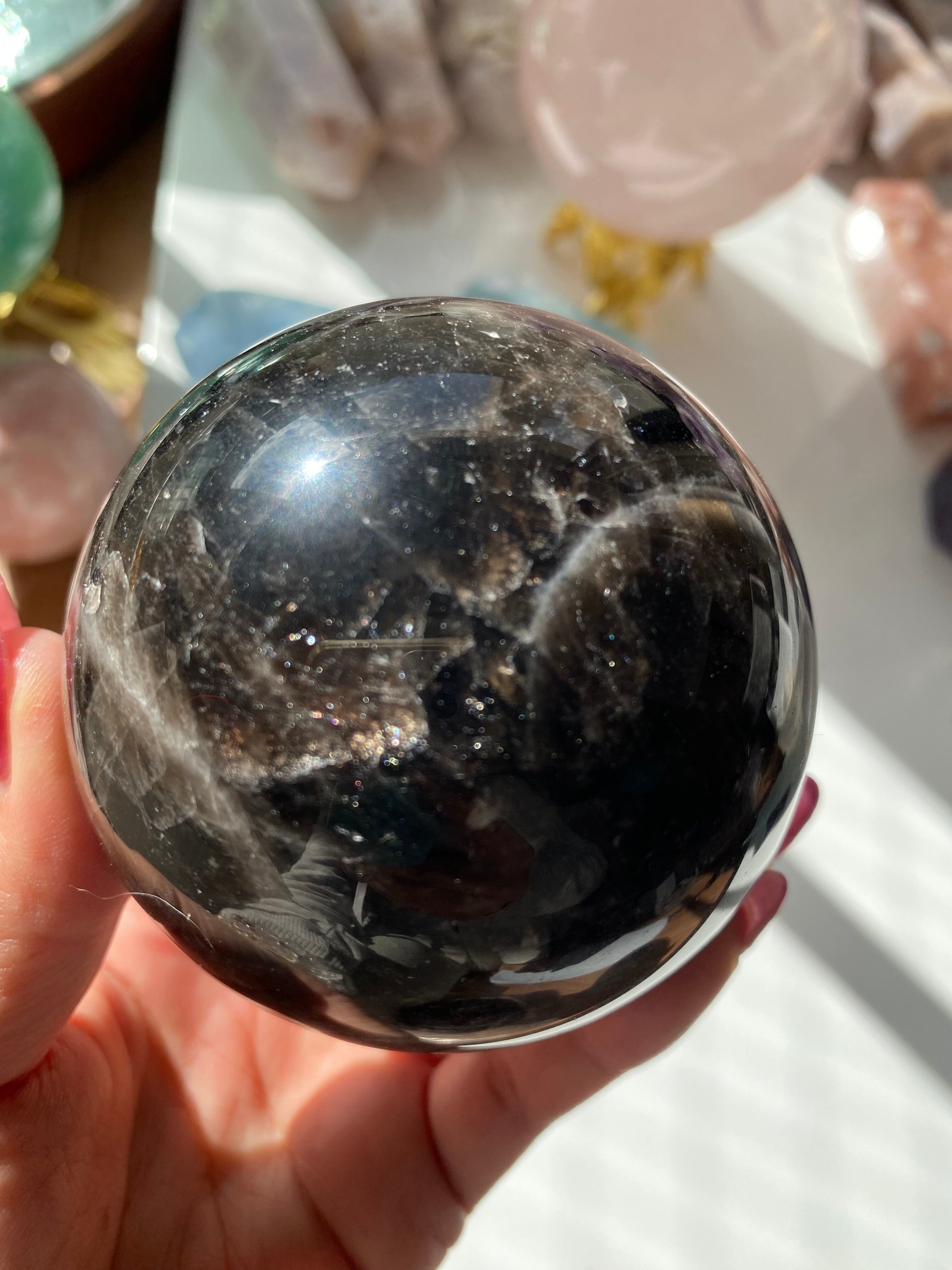 モリオン(黒水晶)は、魔よけ・邪気祓い効果をもつ石の中でも最強の効果を発揮し、邪気・悪念・不安・恐怖など、あらゆるマイナスエネルギーから持ち主を強力に守ってくれるといわれています。 空間の浄化にも役立ち、玄関や家族の集まる居間などに置く事で強力な浄化・守護になります。